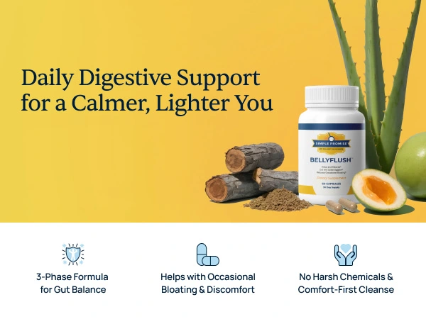 BellyFlush works by targeting built-up waste in your digestive tract. When you take BellyFlush, you’re ingesting a blend of natural laxatives, fiber sources, and other ingredients to promote digestive regularity. The BellyFlush formula operates on the principle that many people unknowingly carry excess waste in their stomachs and digestive tracts. This accumulation can sap energy, worsen health, and cause bloating. If you frequently feel tired, bloated, and unwell, it might be due to undigested waste backed up in your digestive tract. Over time, this waste continues to build up, exacerbating these symptoms.BellyFlush addresses this issue with a blend of natural laxatives and fiber. The laxatives help release waste from your body while the fiber pushes it out. For example, natural laxatives like aloe can significantly aid digestion, and fiber sources like fennel seed can help maintain regular bowel movements. Simple Promise also includes unique ingredients such as bentonite clay, cayenne pepper fruit, and milk thistle to enhance the formula’s effectiveness. These components support digestion and detoxification, making BellyFlush a comprehensive solution for digestive health.