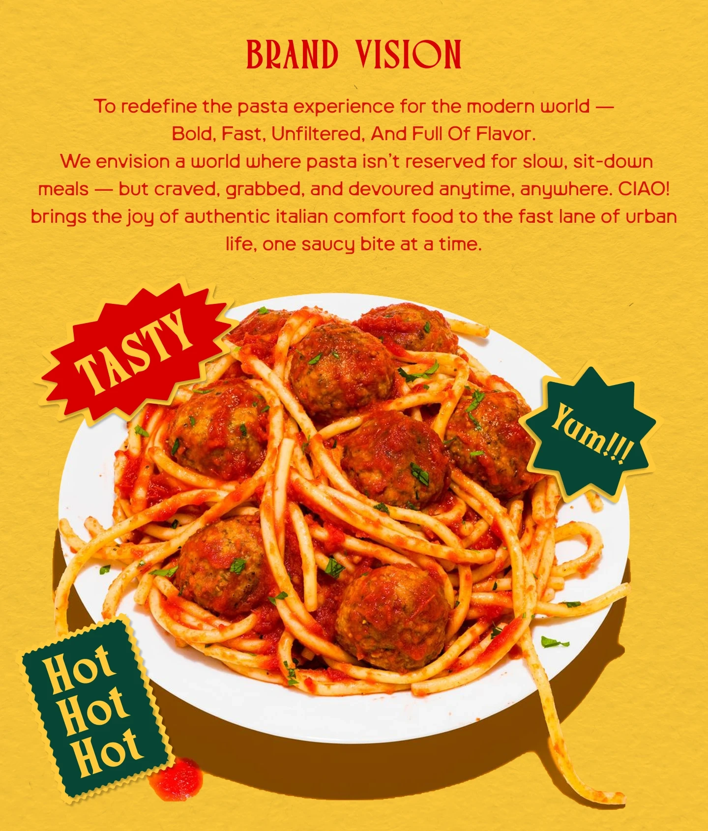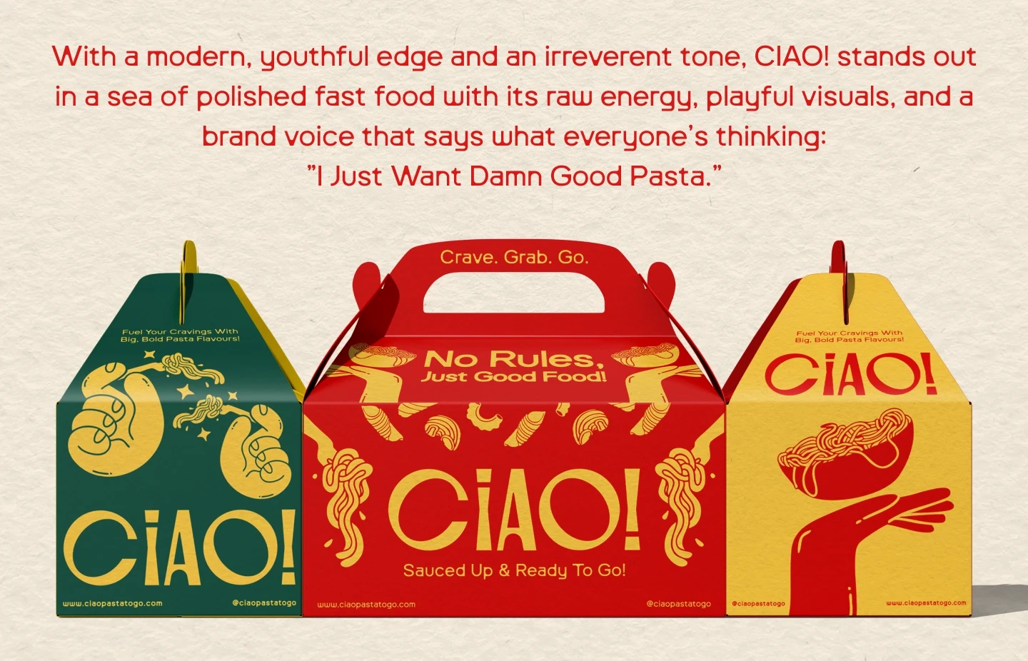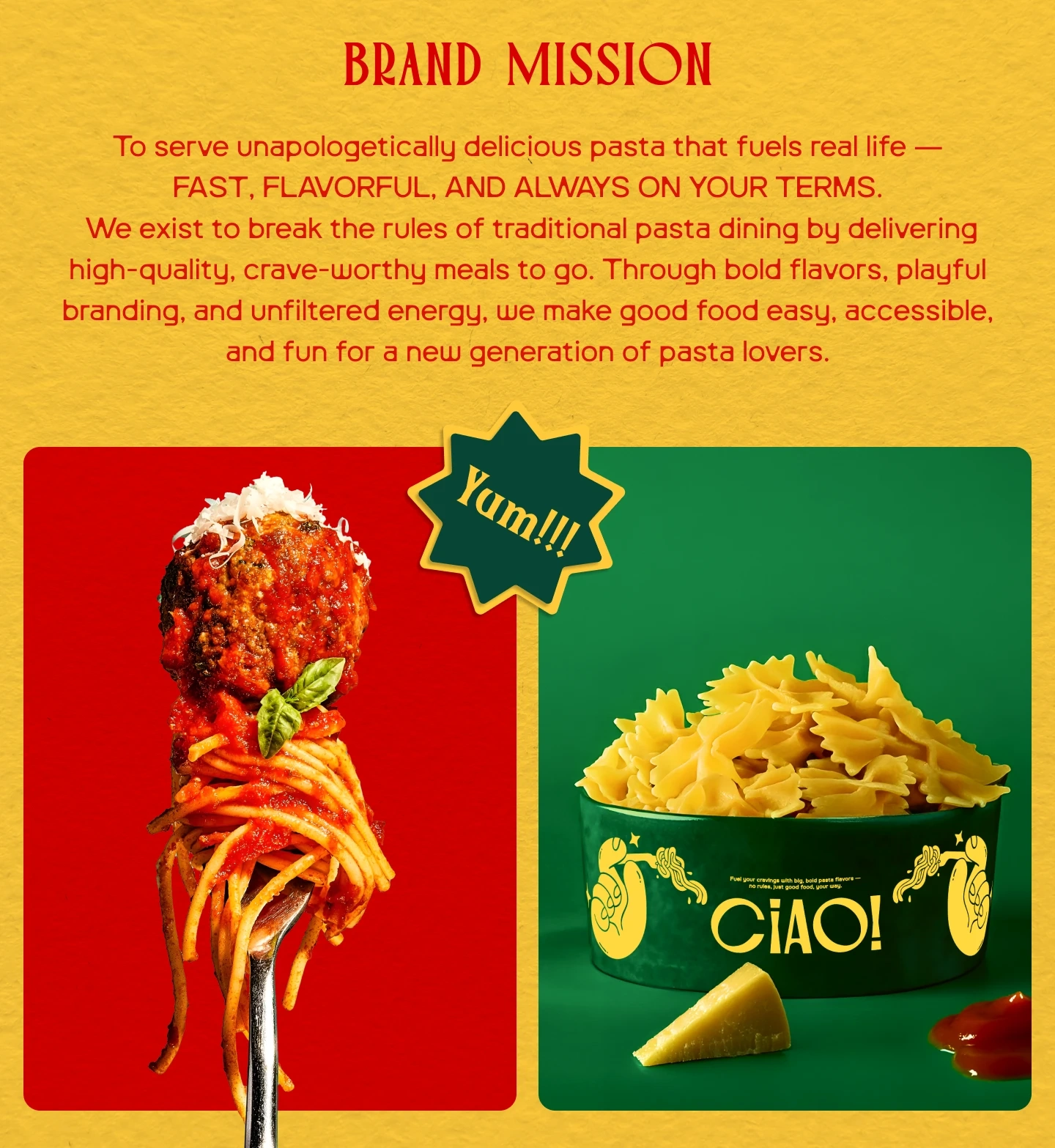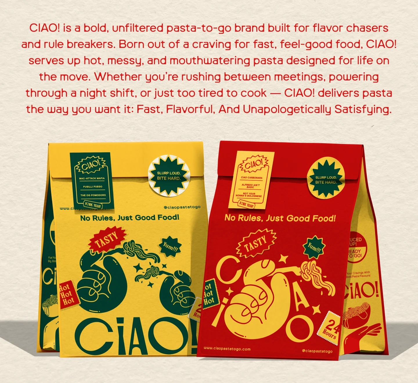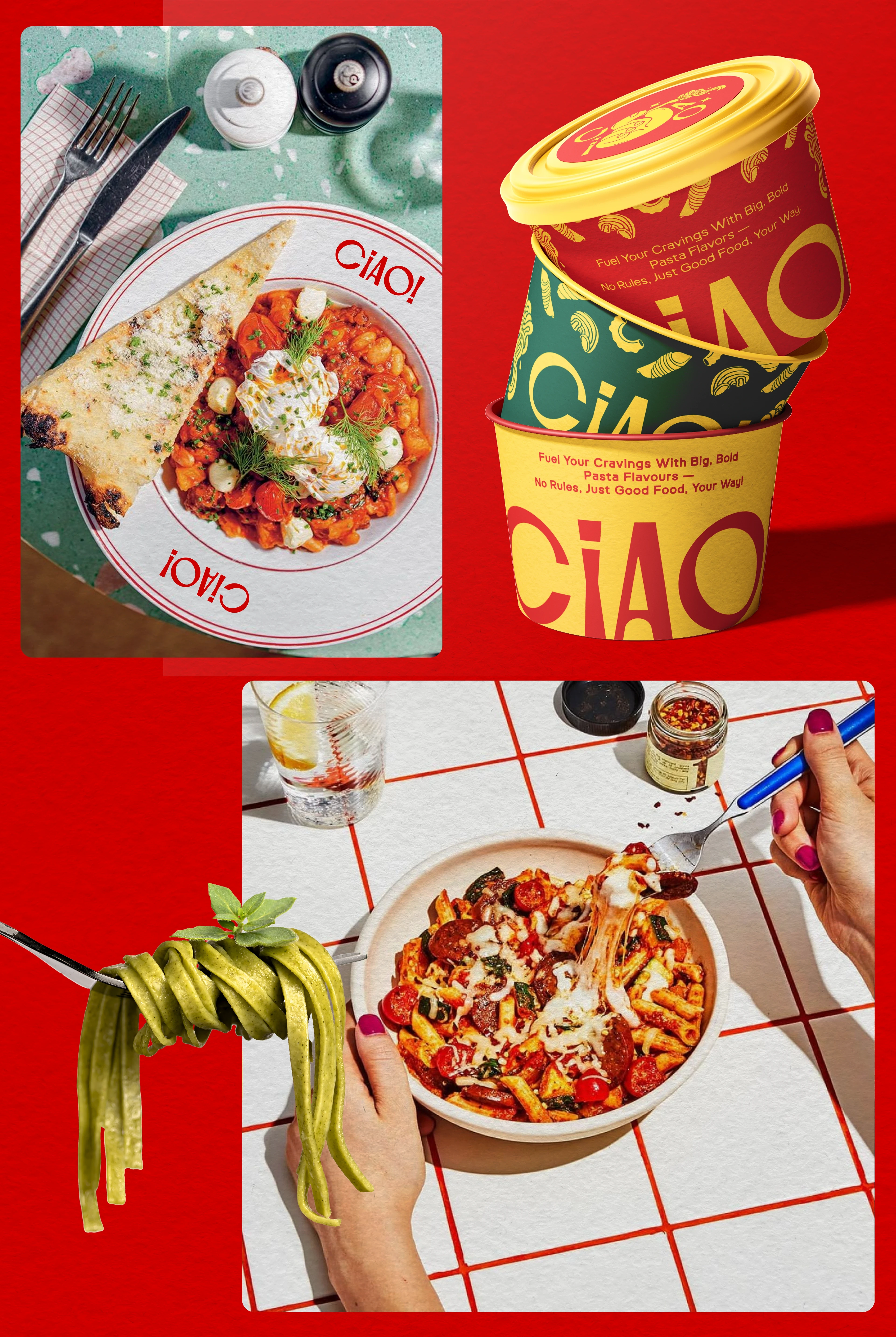 Ciao! is a bold, unfiltered pasta-to-go brand built for flavor chasers and rule breakers.