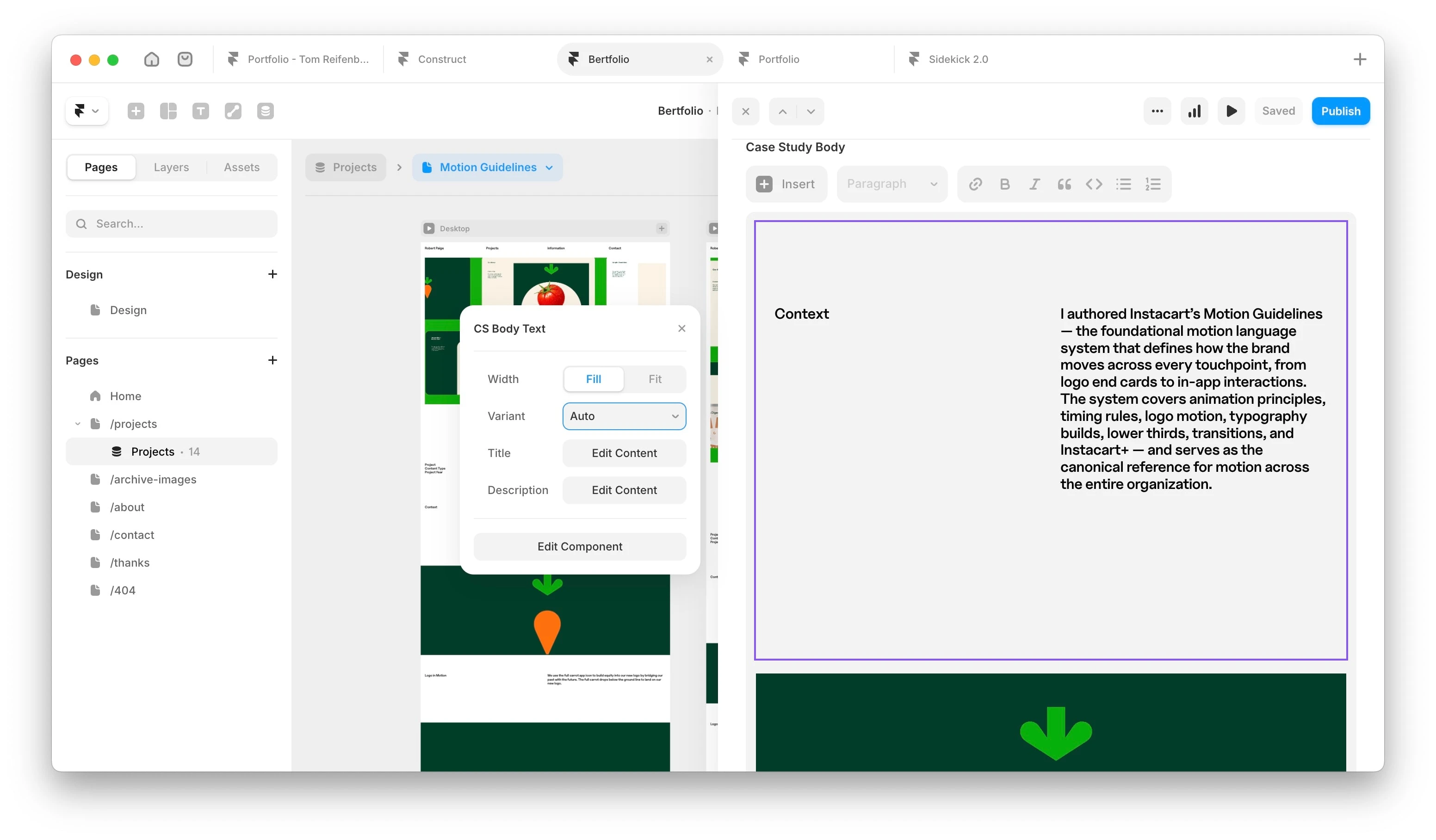 Bert Paige hired me to finalize his portfolio; particularly focused on creating a flexible, sophisticated CMS architecture for complex motion design projects.