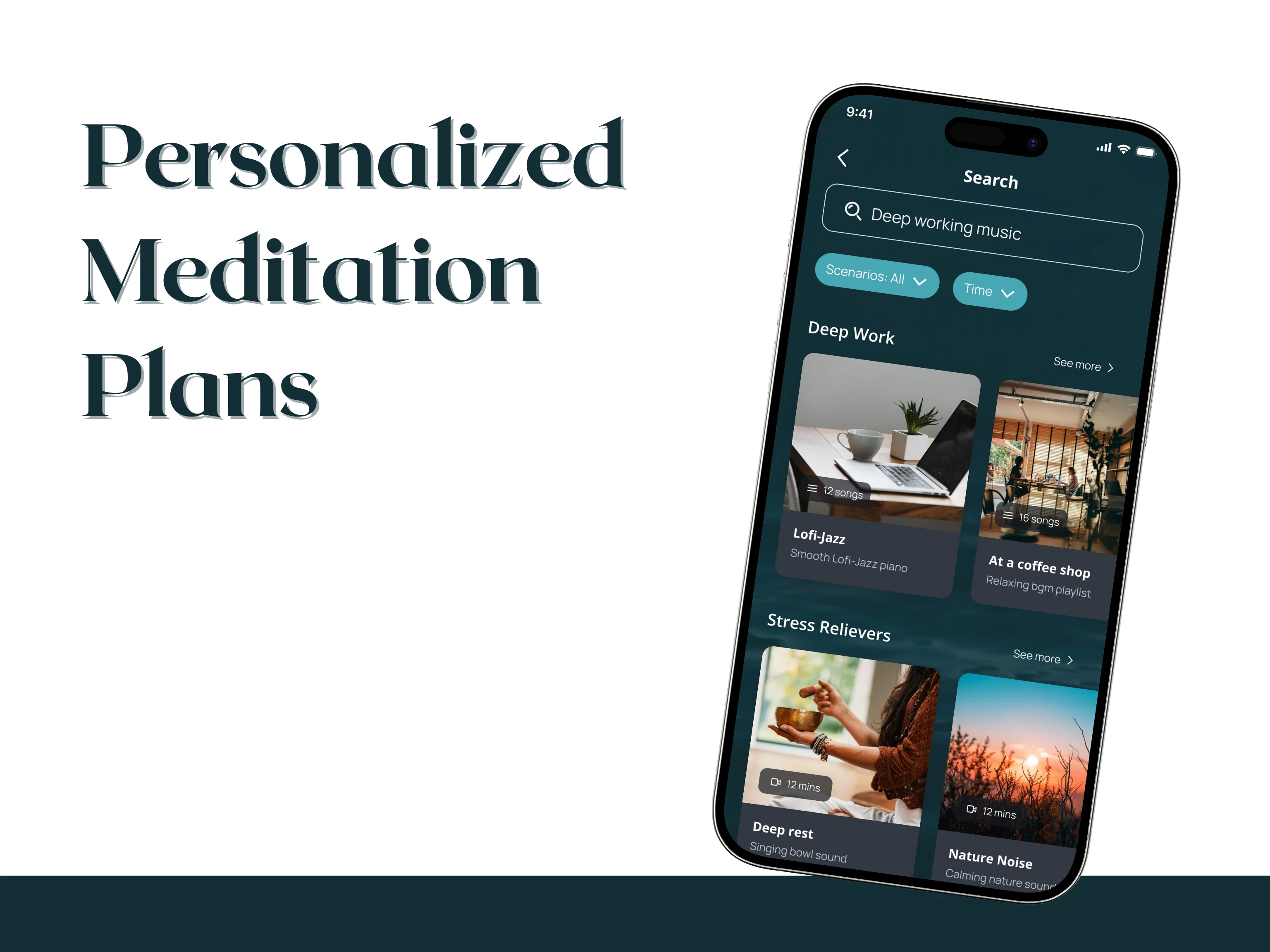 Custom playlists for different goals, sleep, study, focus, or unwind