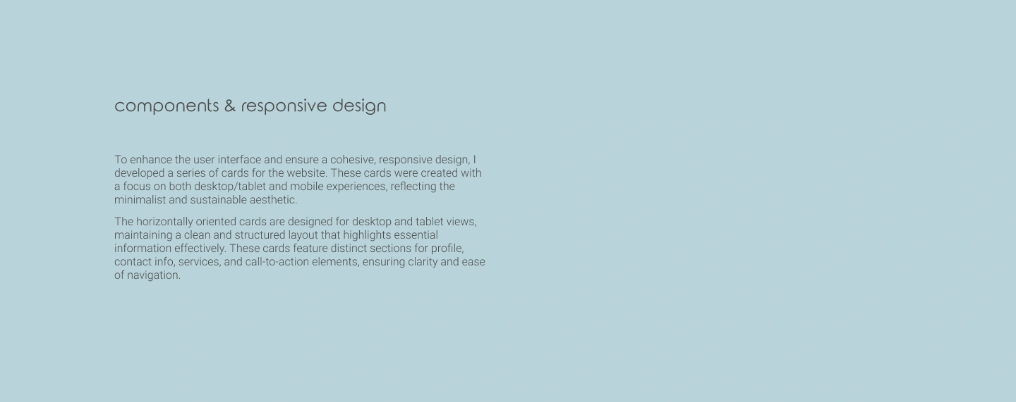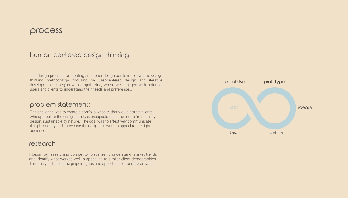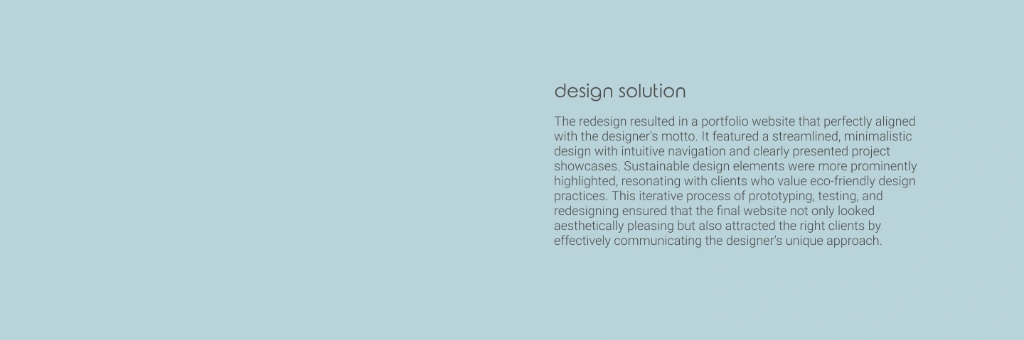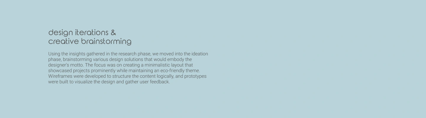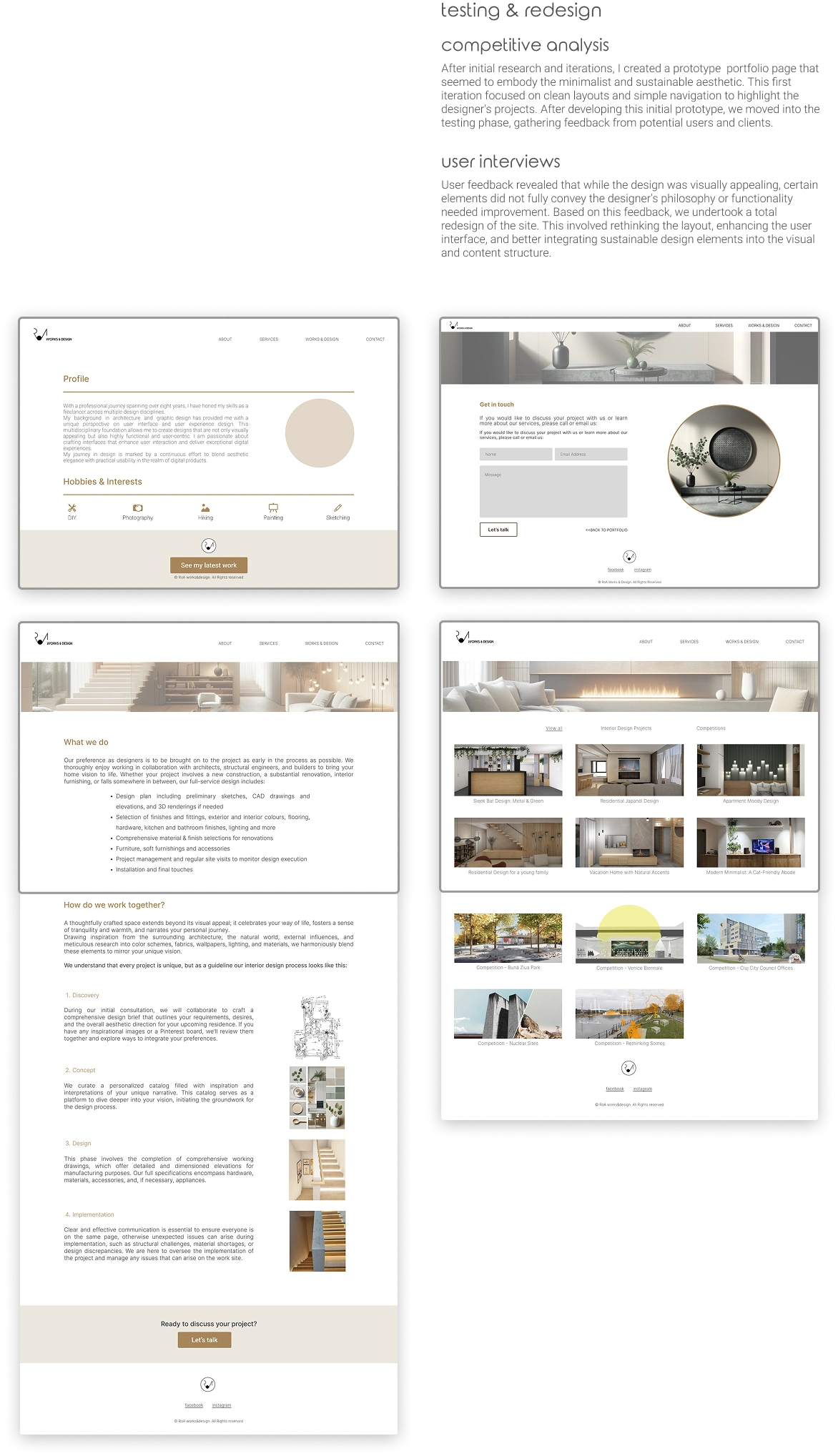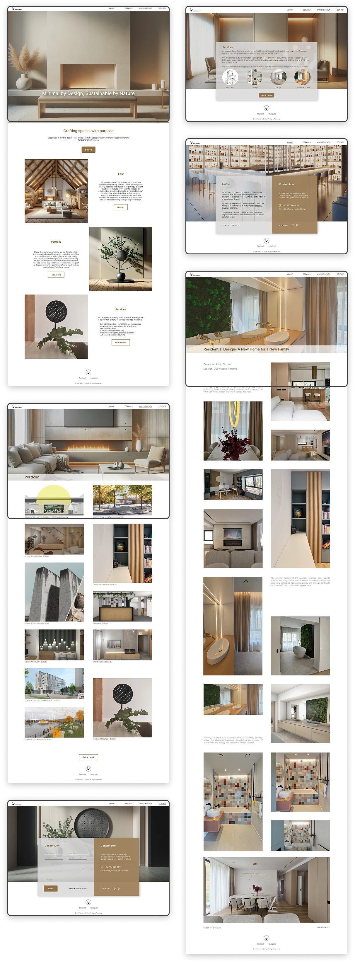 Created a modern interior design portfolio with a focus on minimalism and sustainability, showcasing curated spaces through responsive, elegant UI layouts.