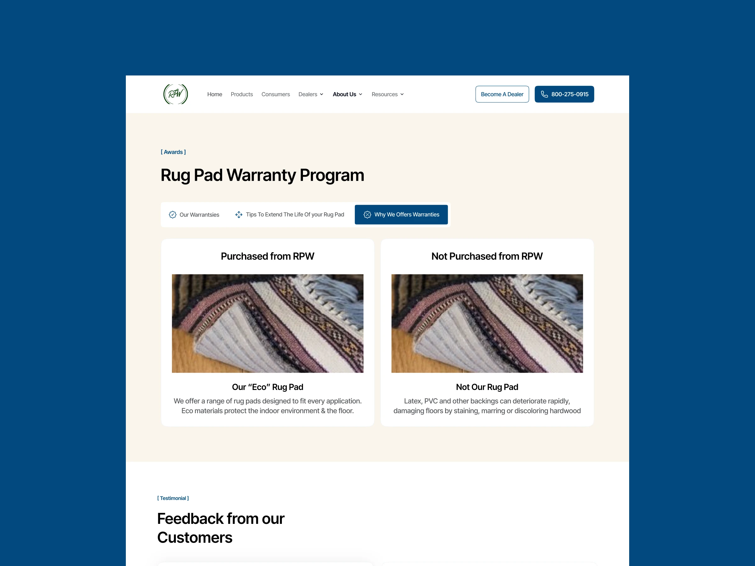 The design had to serve both B2B dealers looking to expand their flooring business and consumers searching for a reliable, latex-free, moisture-barrier rug pad