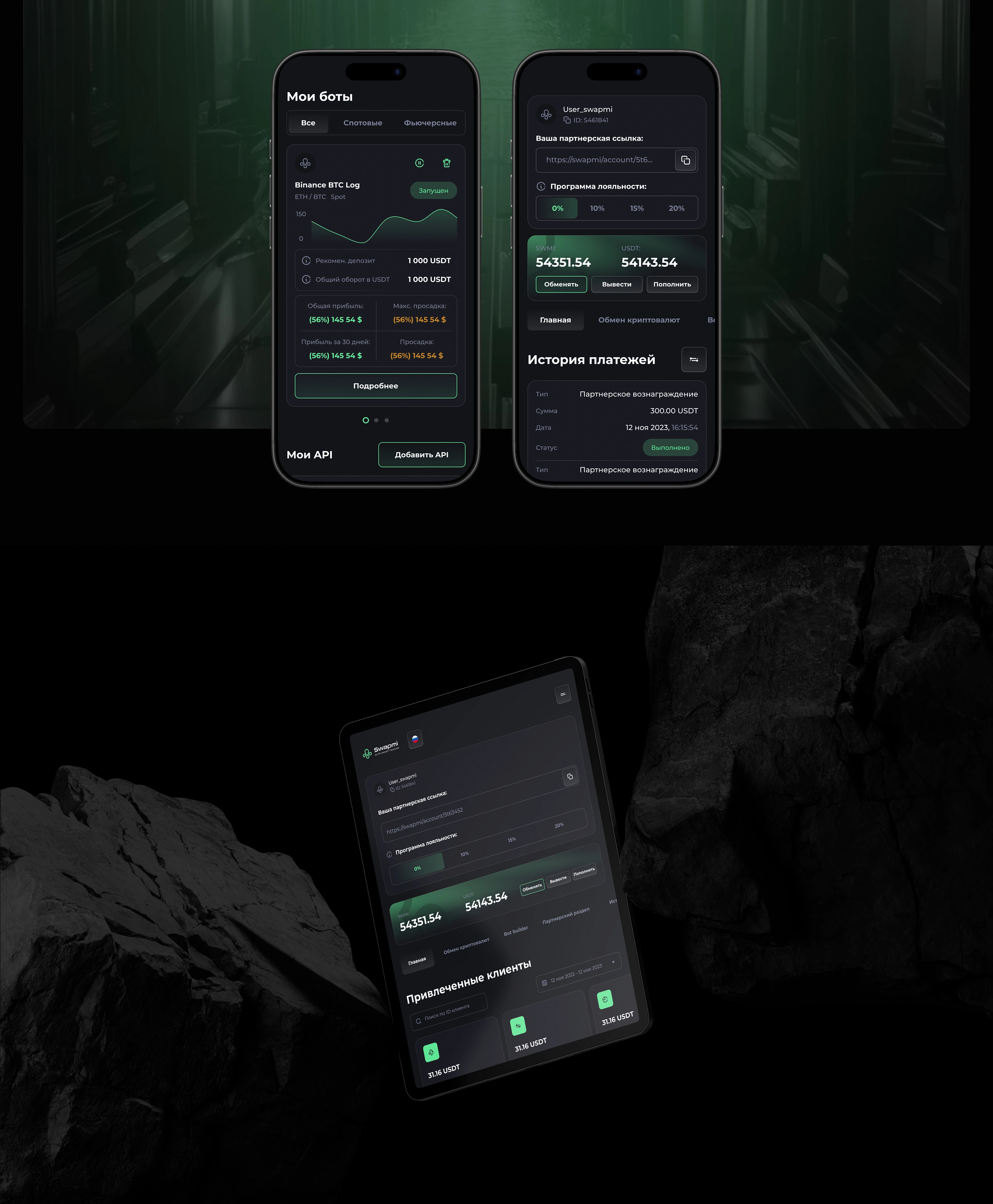 Smart autotrading platform Swapmi. Create, test, track, copy, tokenize and trade with us