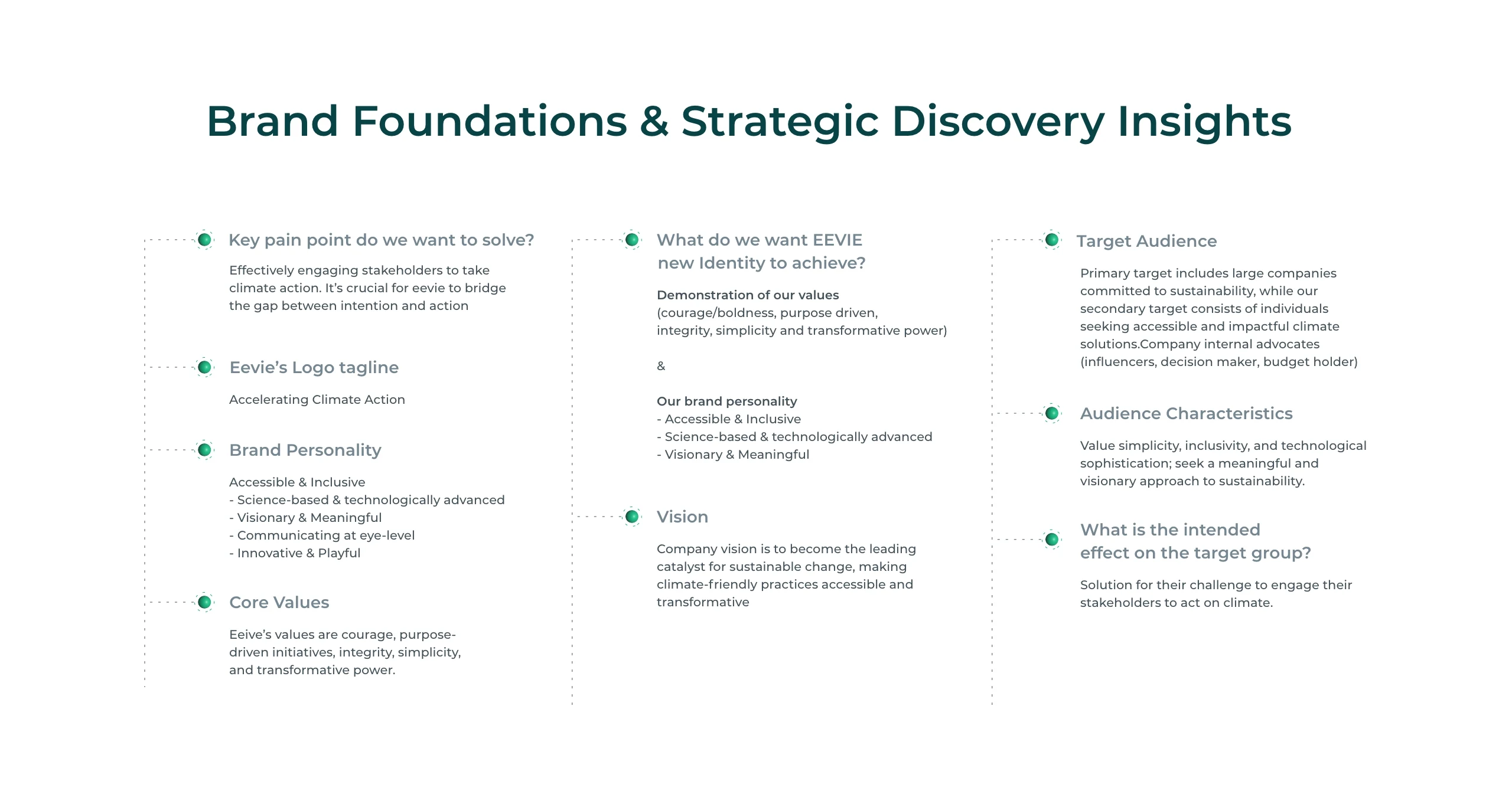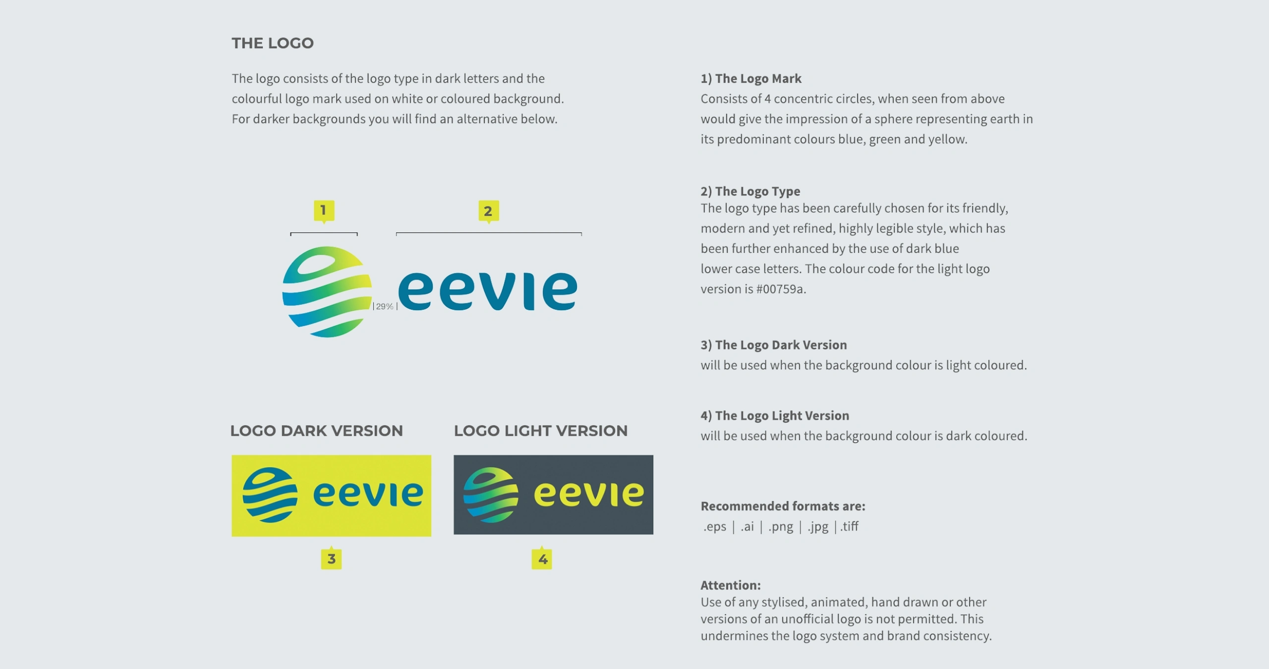 I crafted the brand strategy and identity for "Eevie," a company that tackles the challenge of engaging employees in sustainability.
