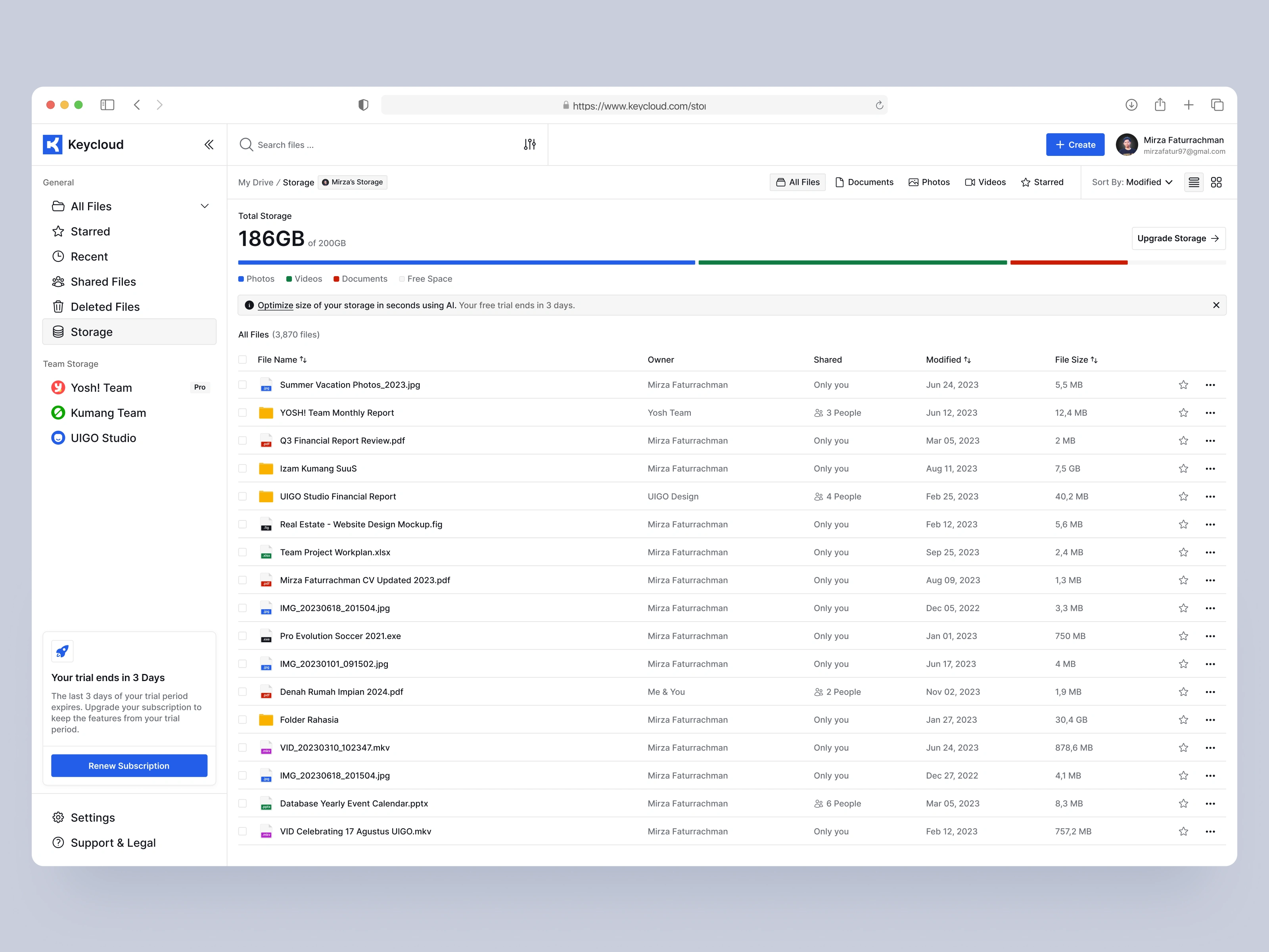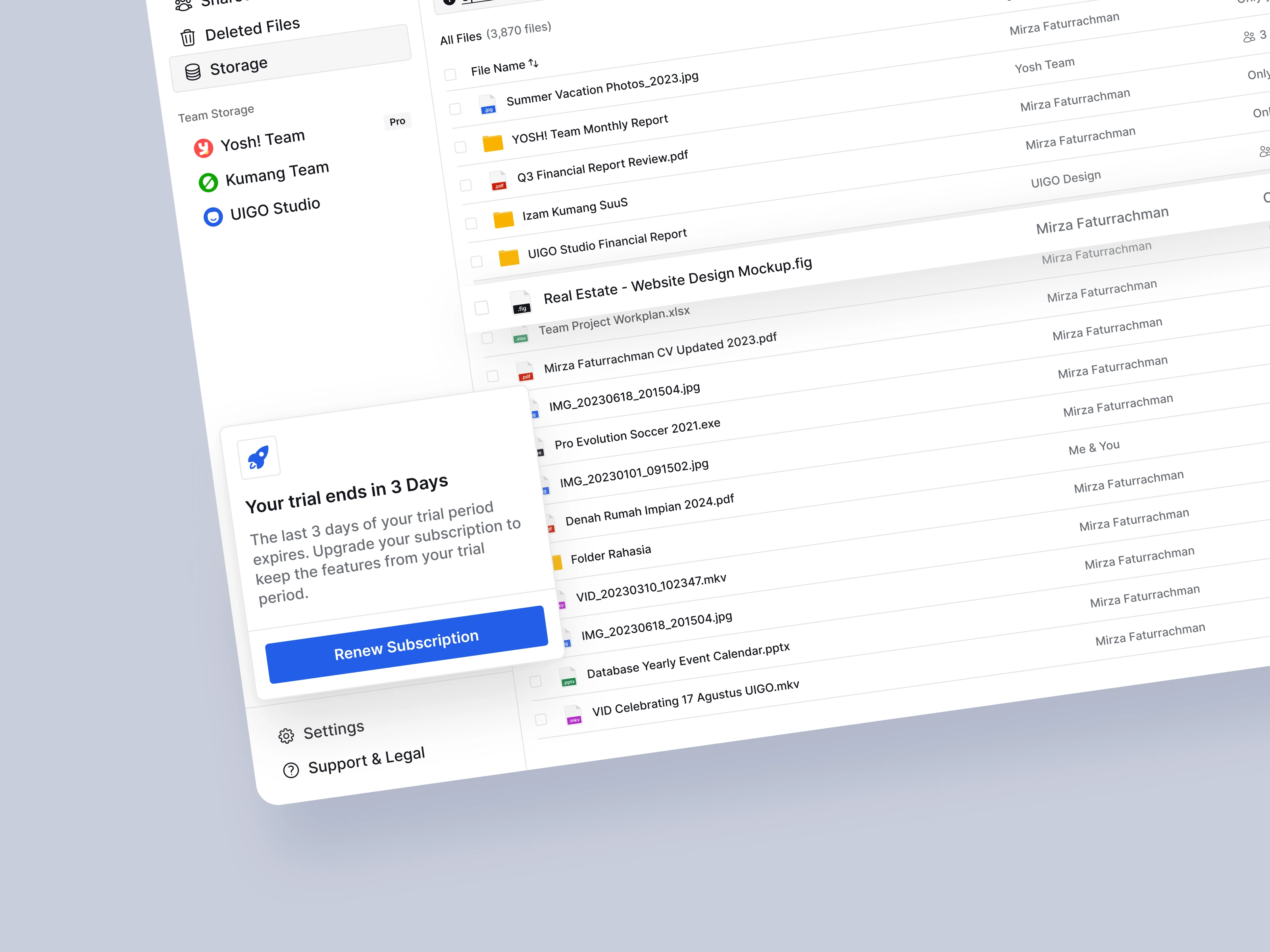 The full reveal of the intelligent cloud storage dashboard, presenting a clean, unified view for effortless file organization, sharing, and secure management.