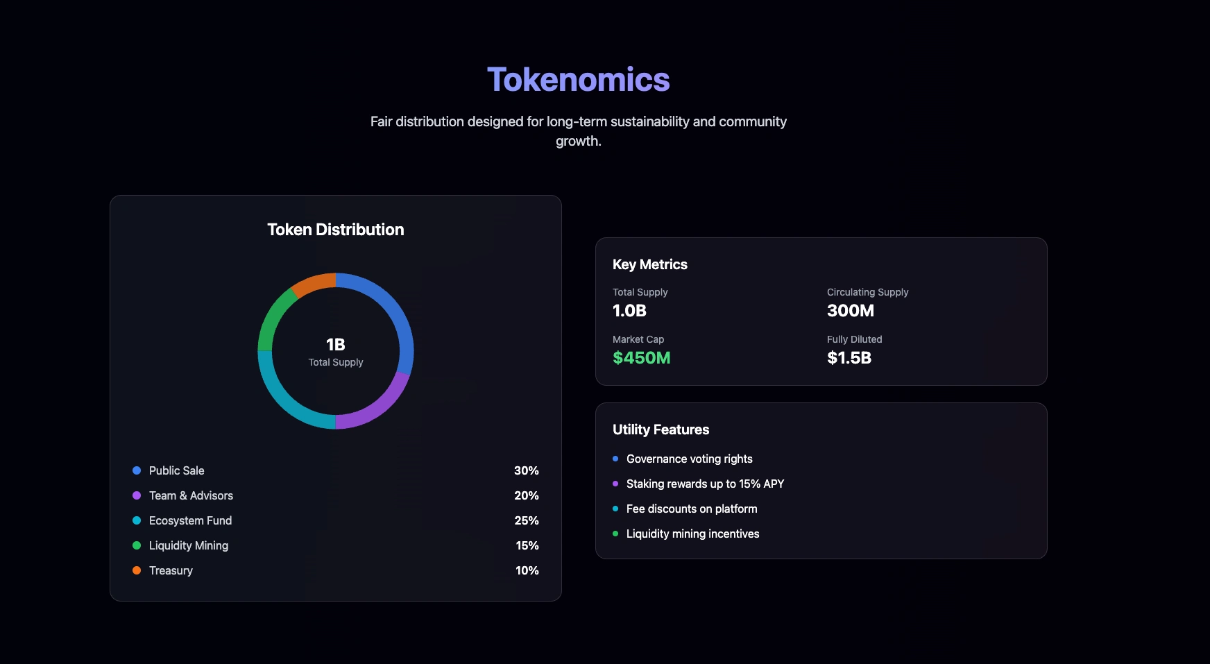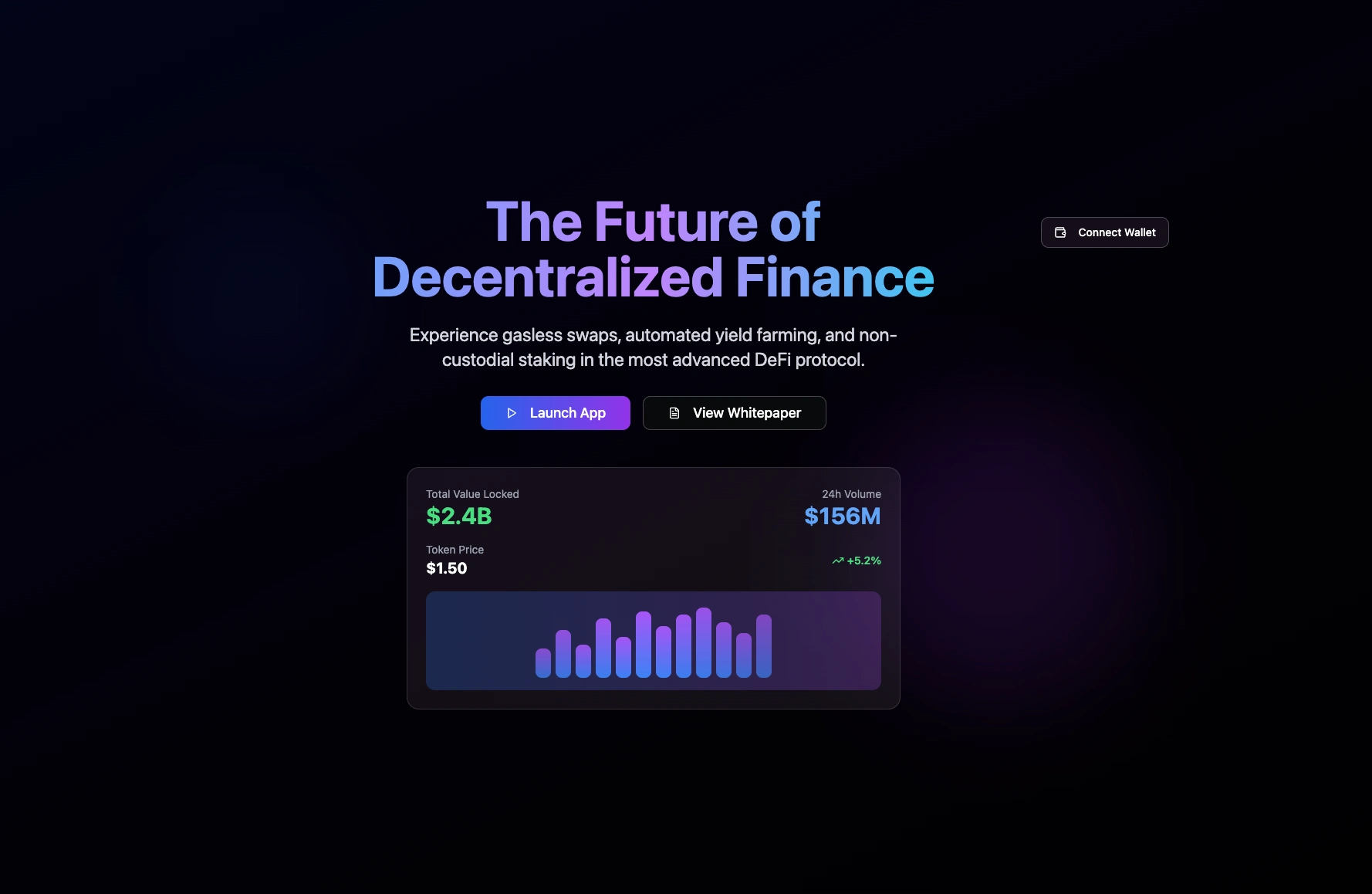 Created a decentralized finance dashboard featuring live market data, token analytics, and dynamic charts powered by CoinGecko and Recharts APIs.