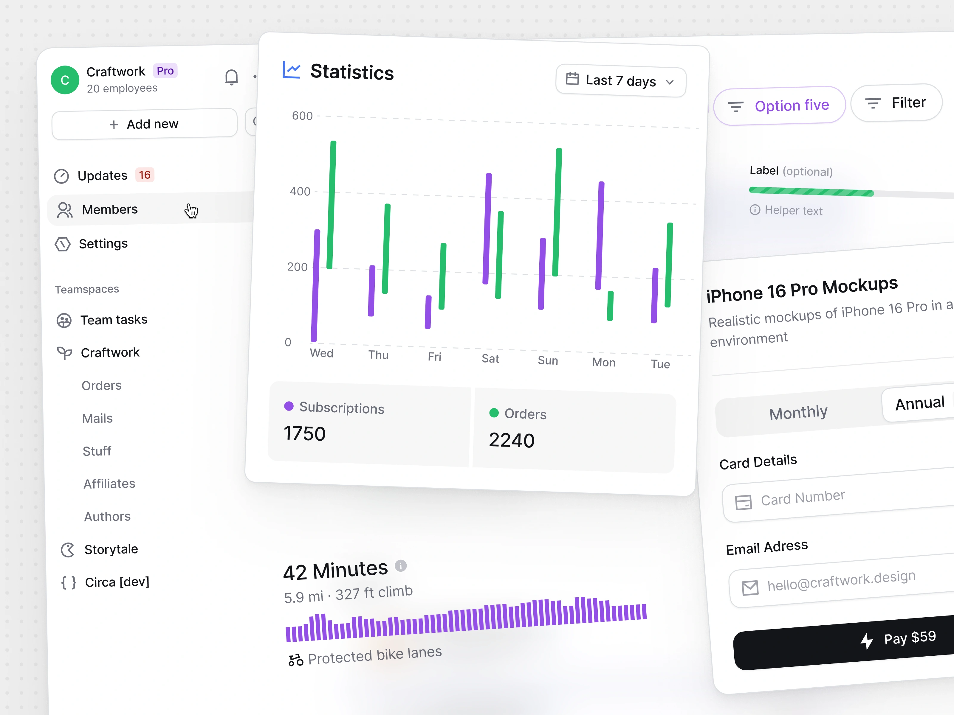 Some of the design pieces assembled using the Blank UI Kit for Figma → useblank.design