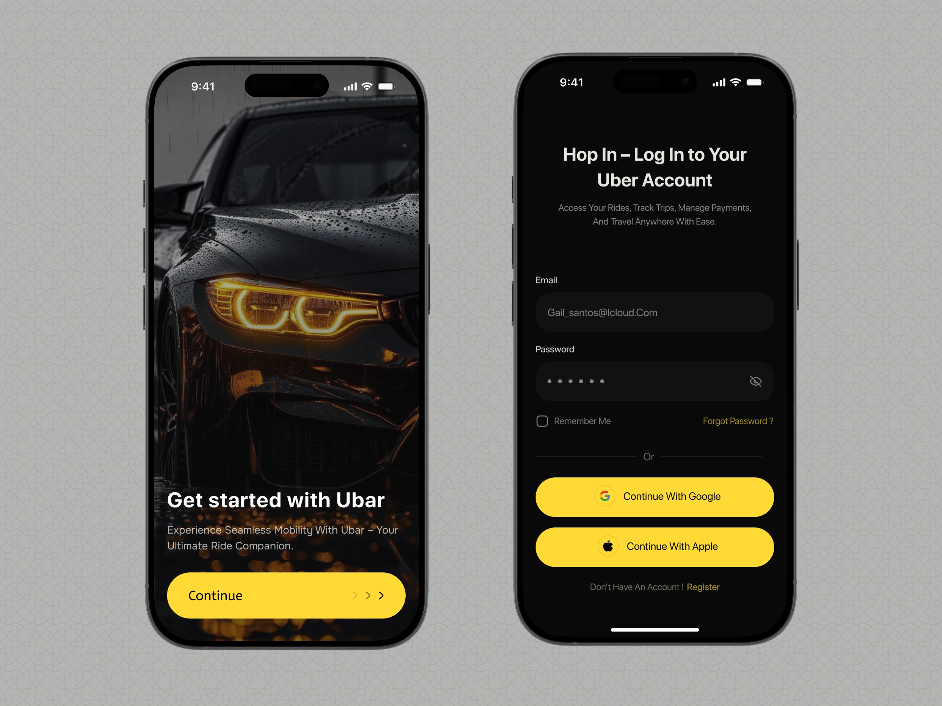 Experience a sleek and user-friendly Ride App Login & Register page designed for effortless access. The clean interface ensures quick sign-in, while the intuitive registration flow makes onboarding new users smooth and engaging. With secure authentication, minimal steps, and a modern design, users can start booking rides in seconds, enjoying a seamless journey from the very first tap.