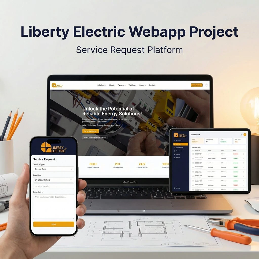 Liberty Electric needed a streamlined, reliable way for homeowners to book professional electrical and solar services. The challenge was to replace manual, traditional, friction-heavy booking methods with a modern web application that manages service requests, real-time scheduling, and technician matching.
