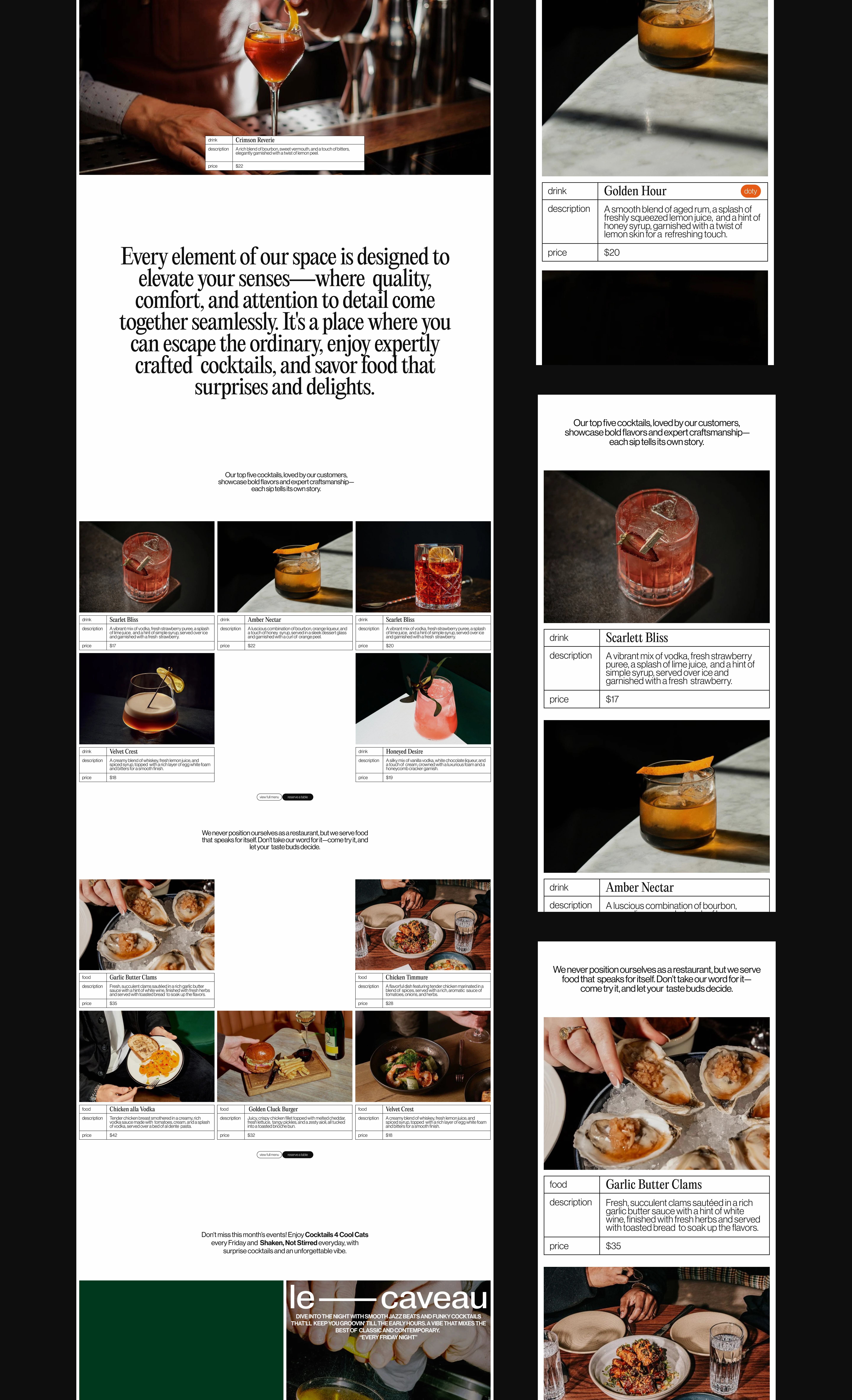 Website design for a bar focusing on digital exposure and branding.