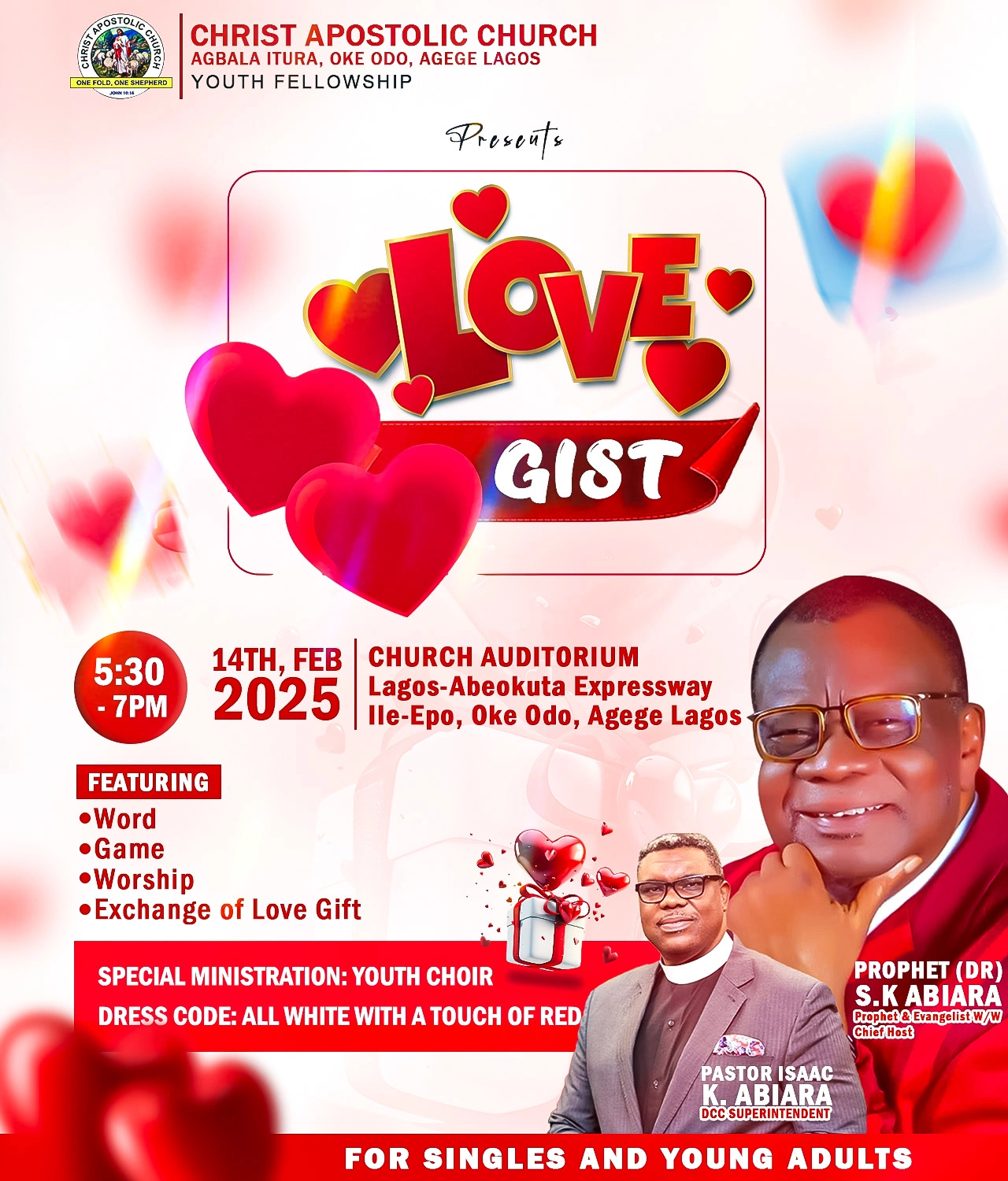 This flyer was designed for Christ Apostolic Church’s Youth Fellowship event in Lagos, Nigeria, aimed at fostering community and spiritual growth among singles