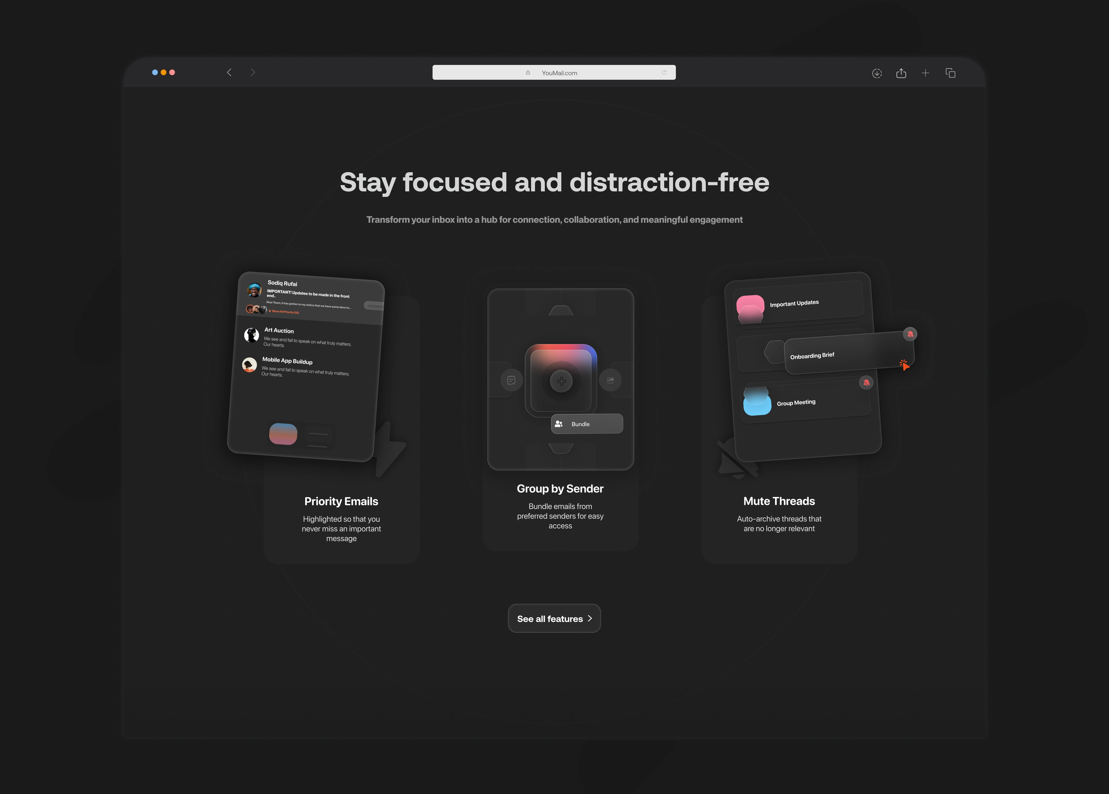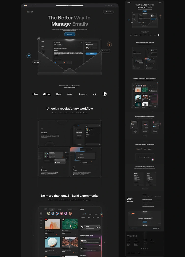 Designing the Bento: I had in mind creating a minimalistic design, yet, detailed enough to give users an easy to view descriptive display on what 'YouMail' offers.