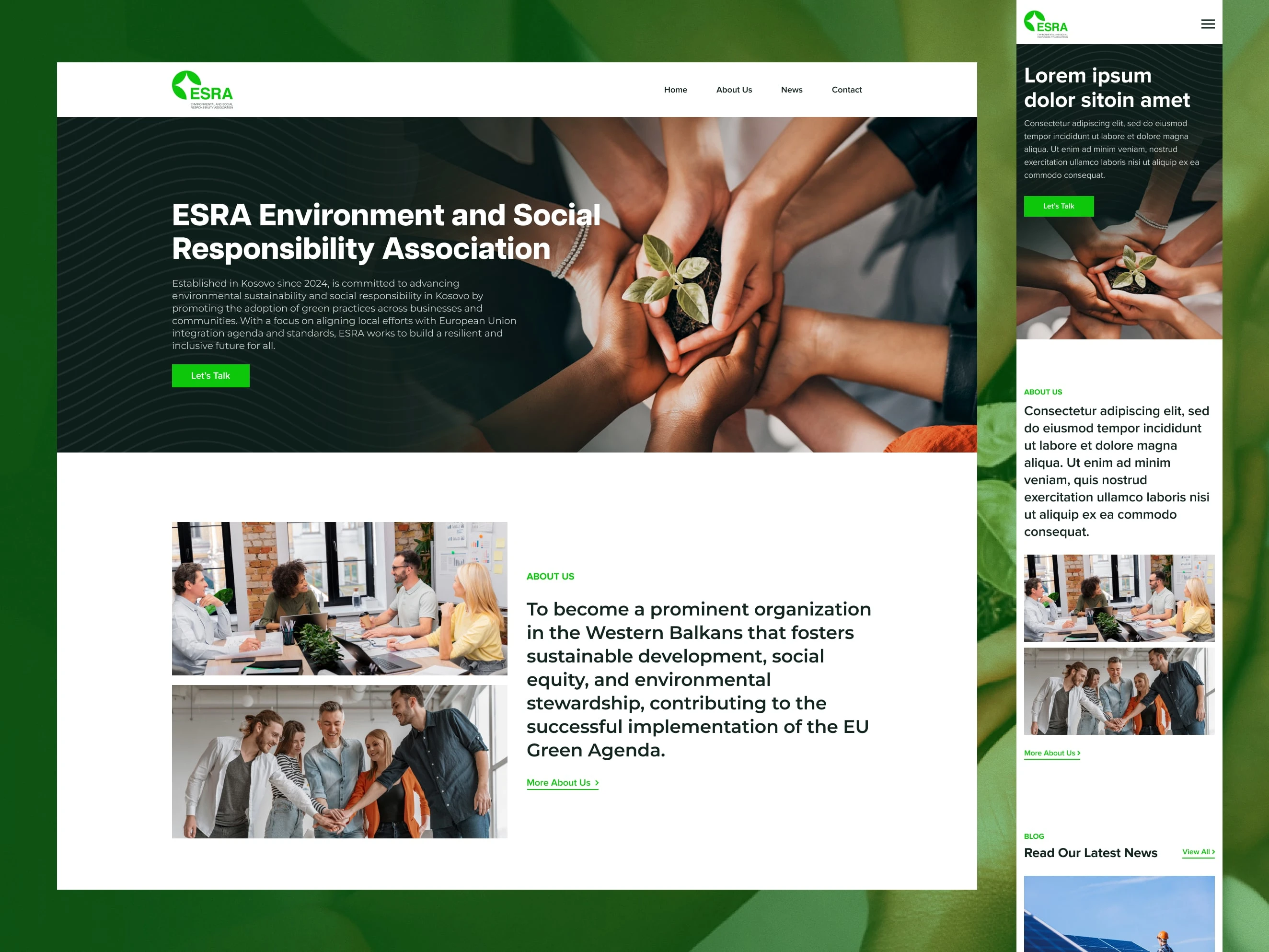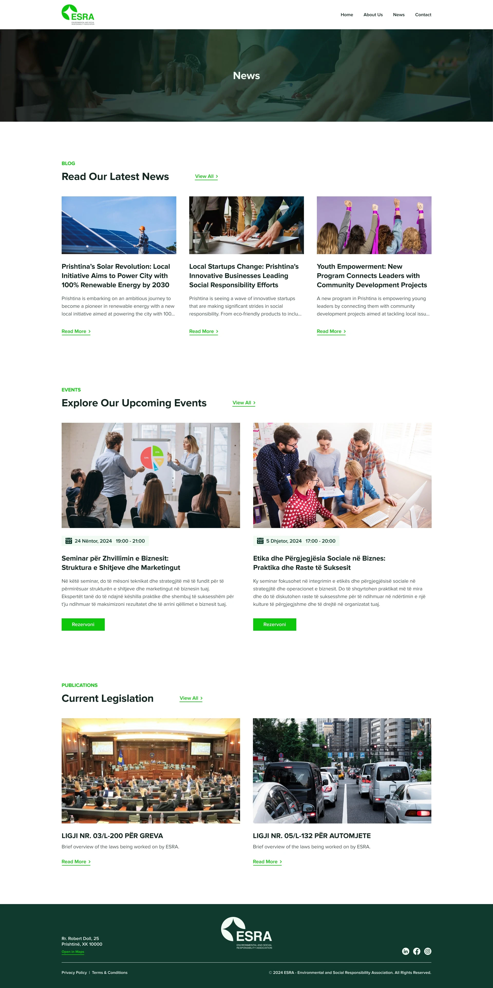 A responsive, CMS-powered website for the Environment and Social Responsibility Association (ESRA) in Kosovo. Built with Next.js for high performance and SEO, the site empowers ESRA to publish news, promote sustainability initiatives, and connect with the community.