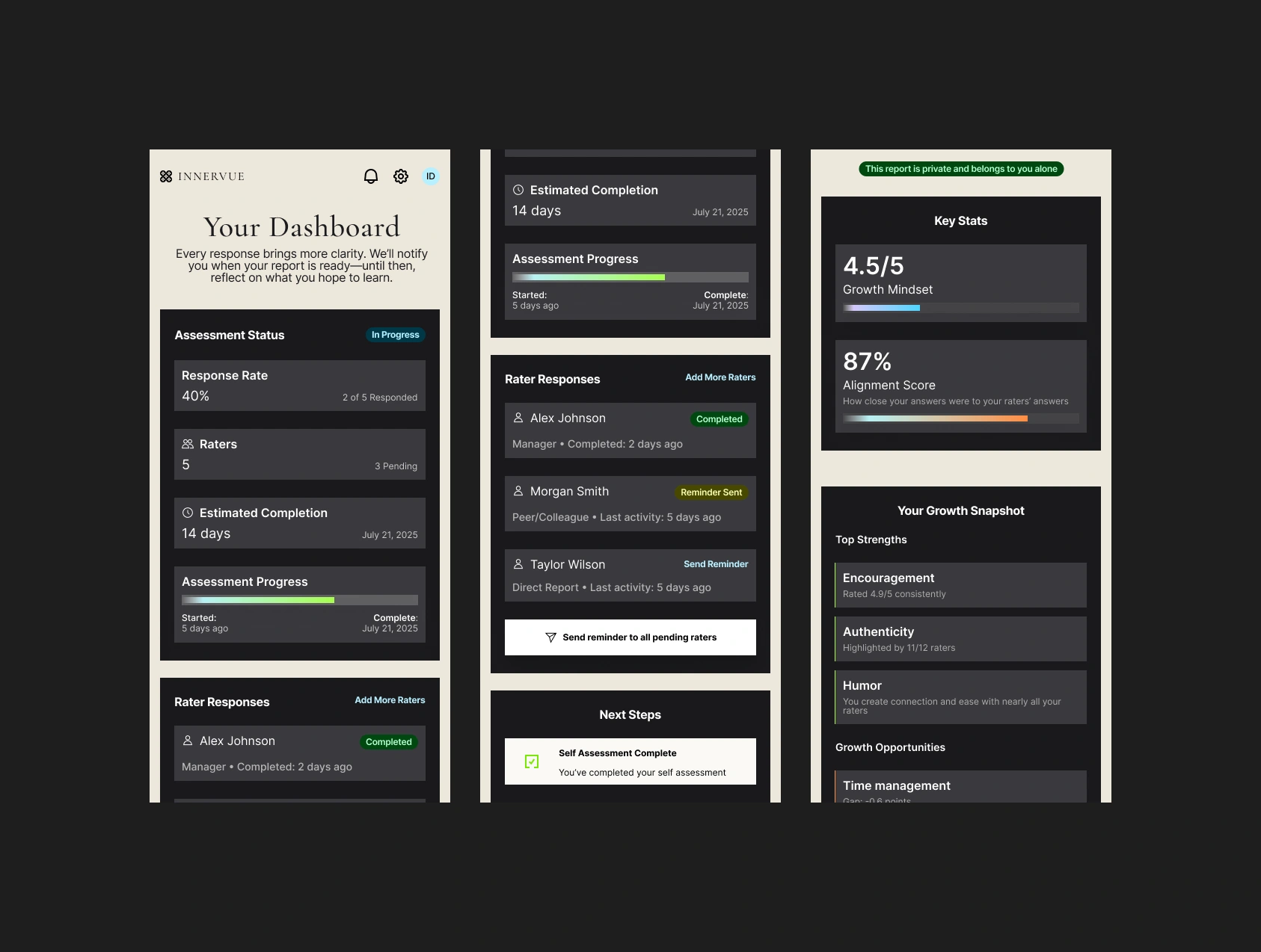 Took InnerVue from idea to launch with a brand, UX, and product strategy that turned a bold vision into a market-ready platform for personal growth.