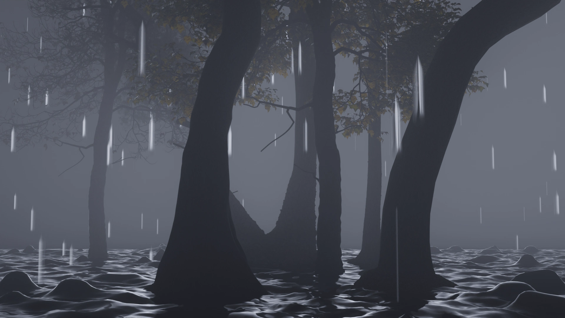 I came across a rain effect on Instagram — just rain falling. It was simple, but it gave me an idea. I wanted to do more than just make it rain. So, I started building a ground surface that would actually react to the raindrops, like how water ripples in real life. I didn’t follow any tutorial for it — just tested things out until it worked. It might not be a new concept, but doing it by myself felt like a small milestone.