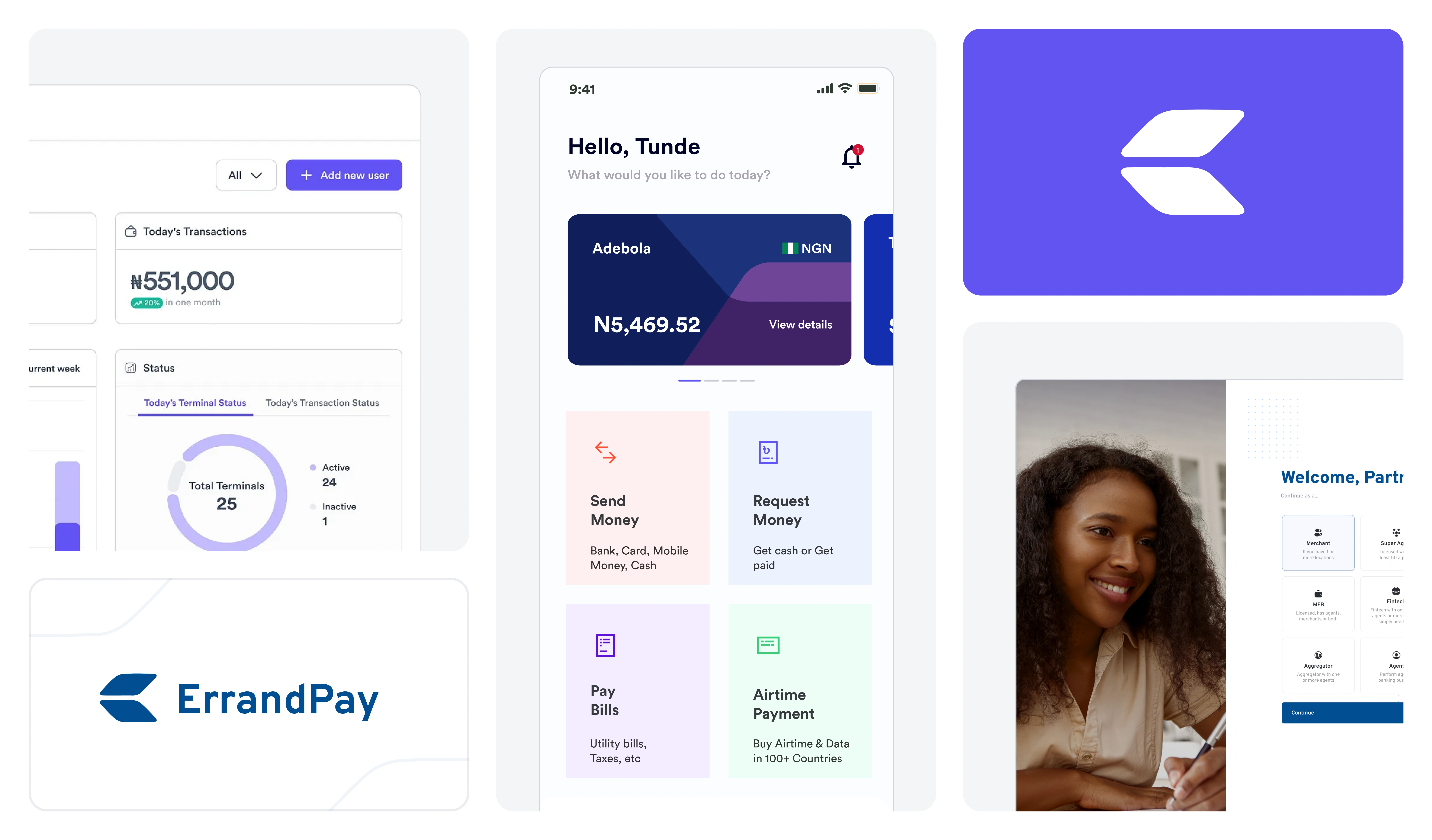ErrandPay is a fintech infrastructure platform powering payments, agency banking, and financial operations for businesses. I shaped the cross-platform product experience—POS, mobile, and back-office dashboards—ensuring clarity, trust, and operational efficiency across every user touchpoint.