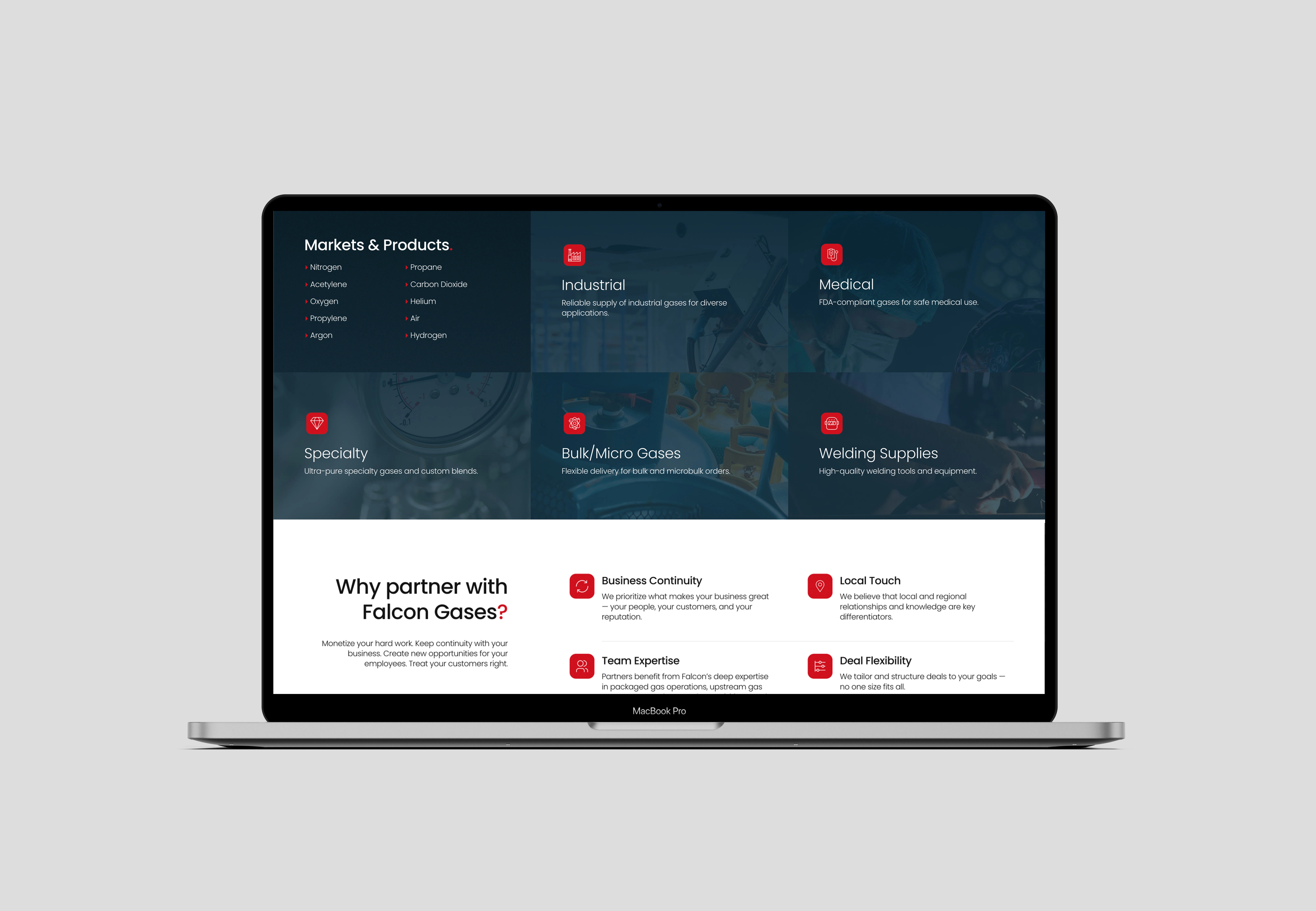 Falcon Gases is an industrial and chemical distribution company founded by experienced entrepreneurs and backed by leading investors. Entering a competitive B2B market, they needed a credible, polished brand and website that could communicate trust to business owners, private equity, and industry stakeholders.