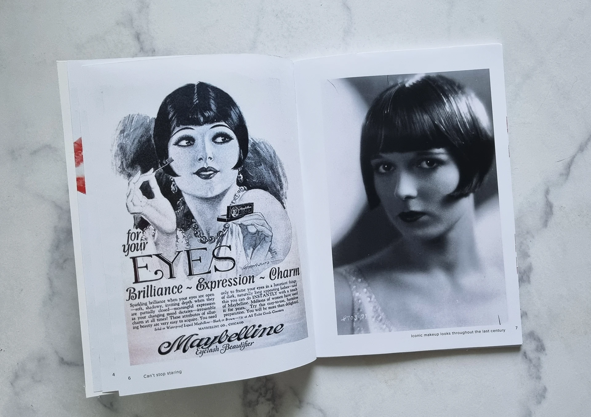 Can’t stop staring is a 61 page hand-bind publication that visually displays iconic makeup looks throughout the last century with each decade beginning with a …