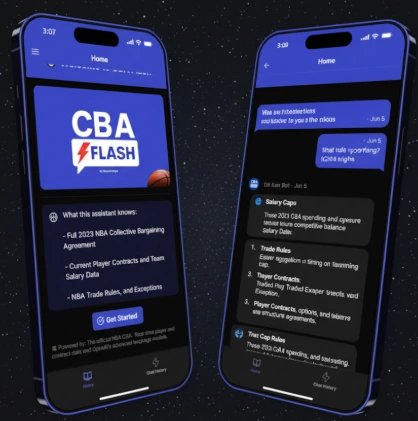 The NBA CBA Smart Assistant is an AI-powered chat app that helps users understand the NBA Collective Bargaining Agreement, player contracts.