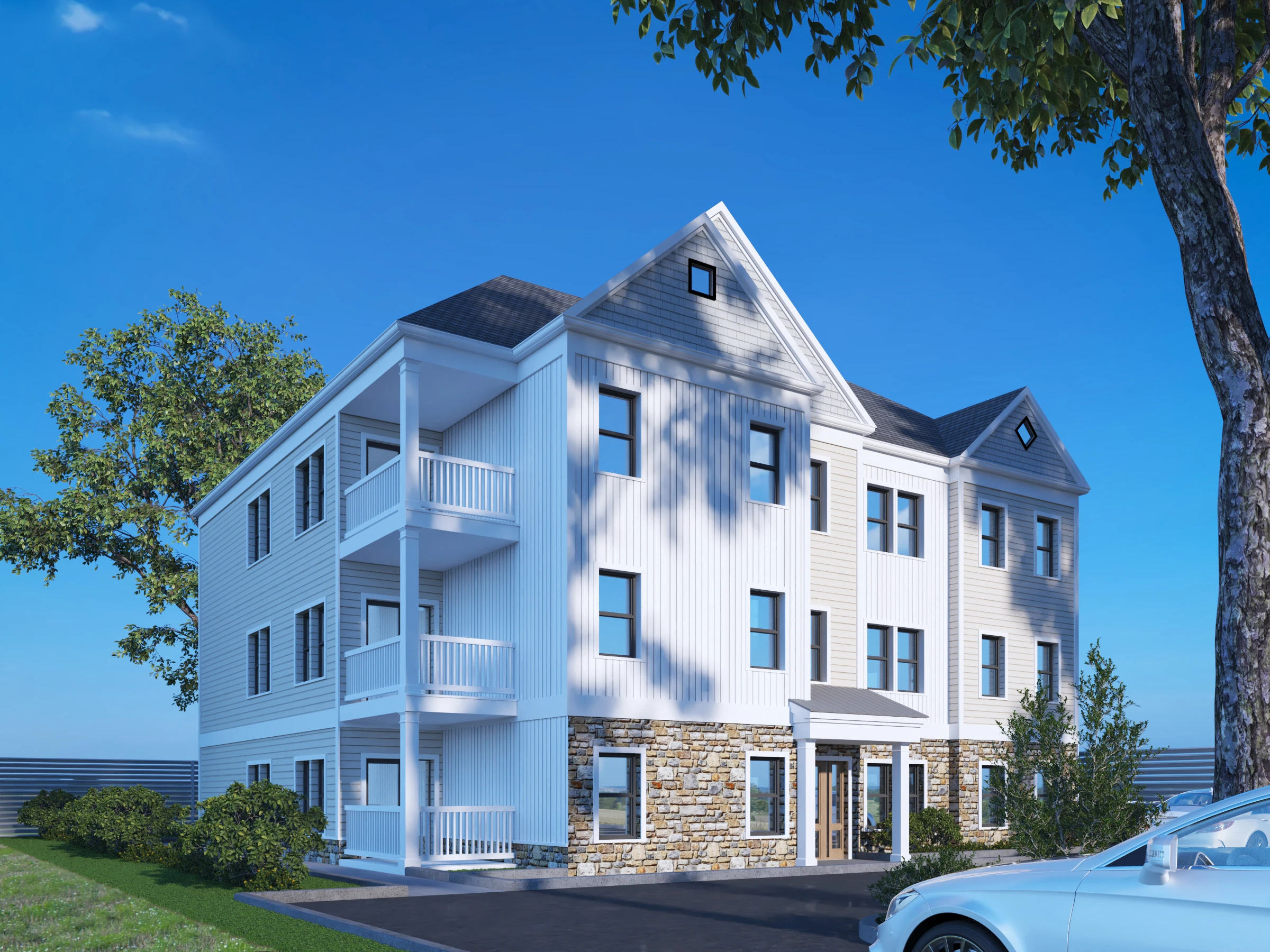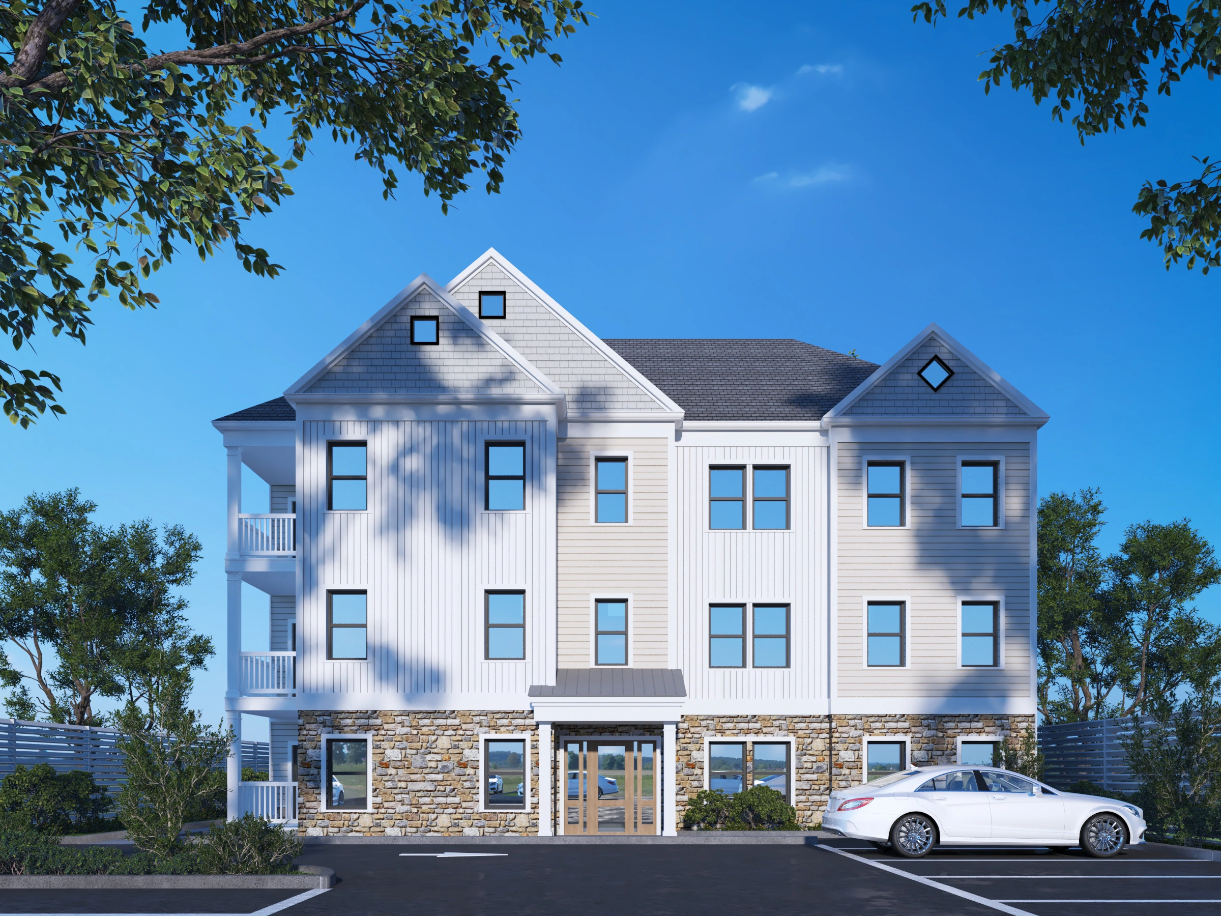 Bright, inviting, and beautifully balanced—this elegant facade blends classic textures with crisp lines for a fresh take on suburban sophistication.