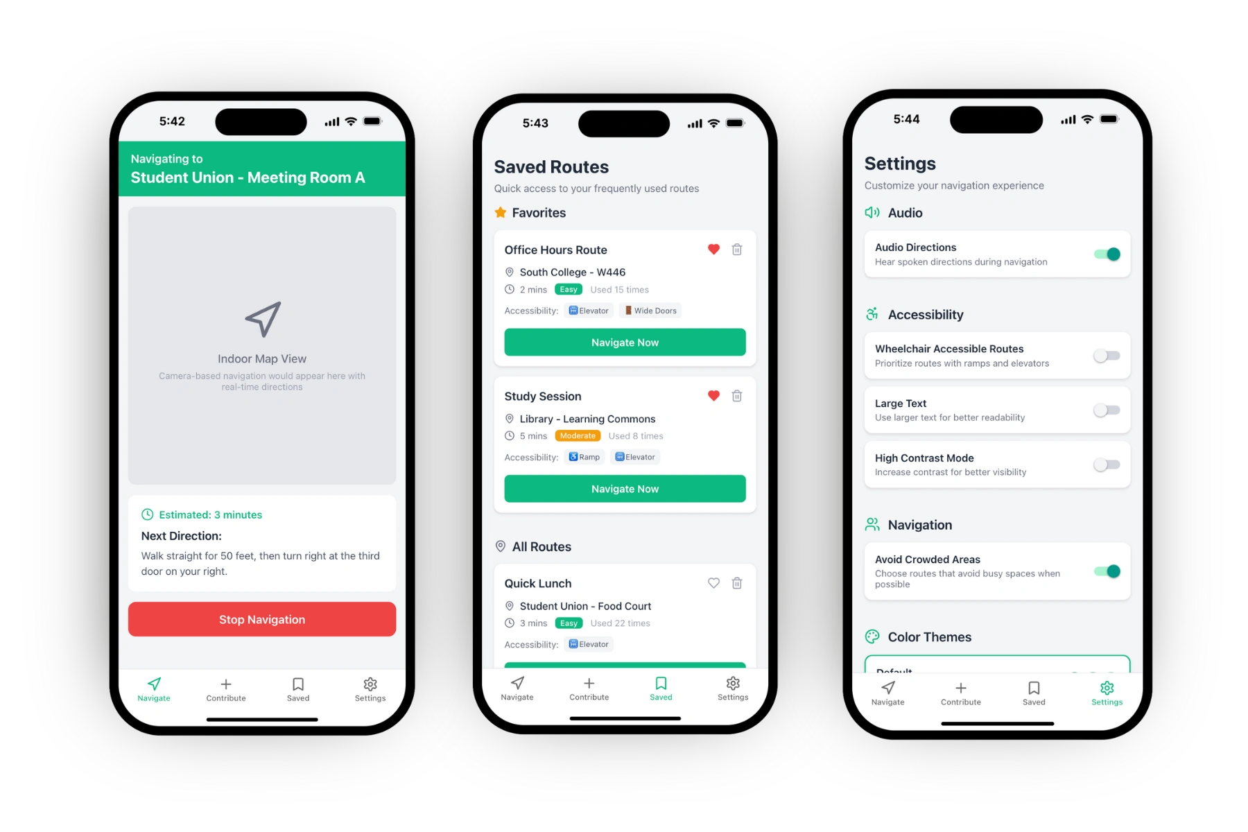 Saved Routes Management: Lets users personalize and organize their most-used paths for reliable, low-effort navigation.