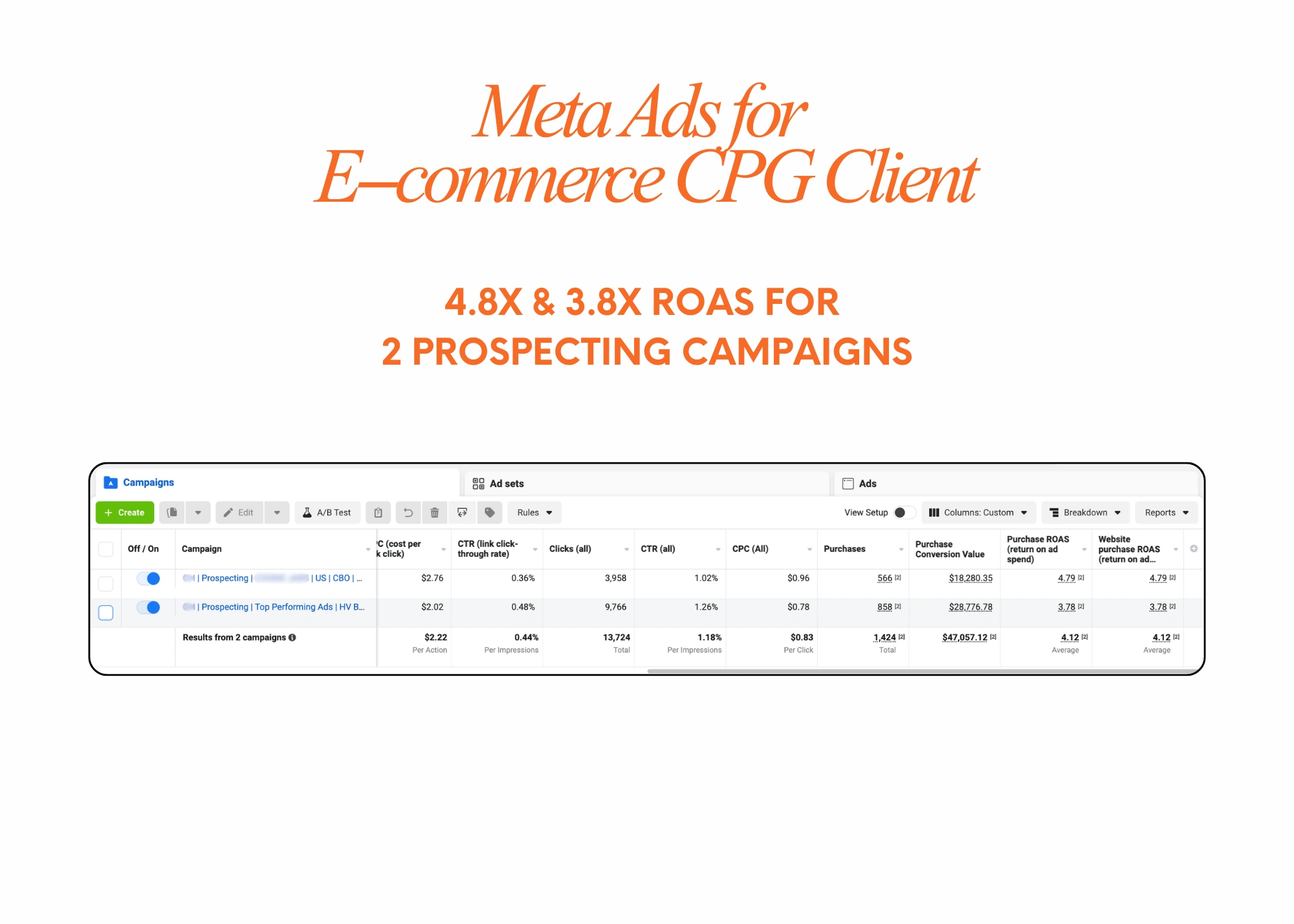 Setup & managed new Facebook ads account for D2C fashion client and achieved 4.8x ROAS for Prospecting campaigns.
