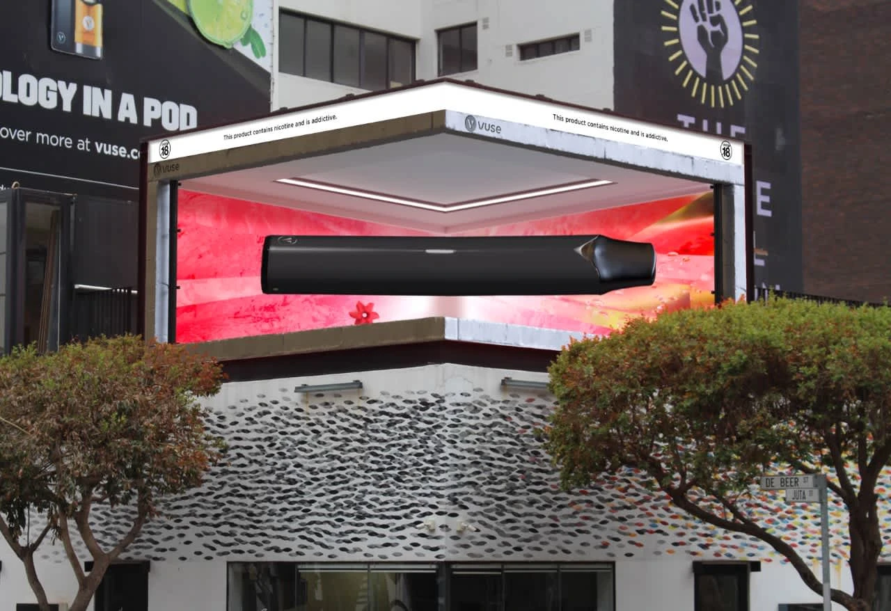Ad created for Vuse. 3D billboard mapping and animation done.