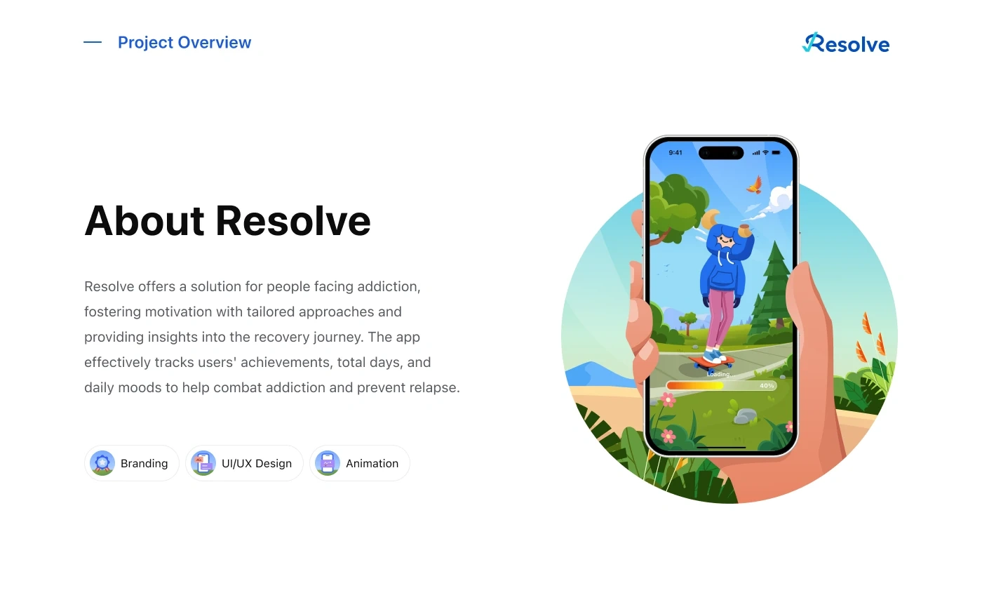 Resolve is a mobile app offering step-by-step guidance for people overcoming addiction, with tailored approaches for every recovery journey.