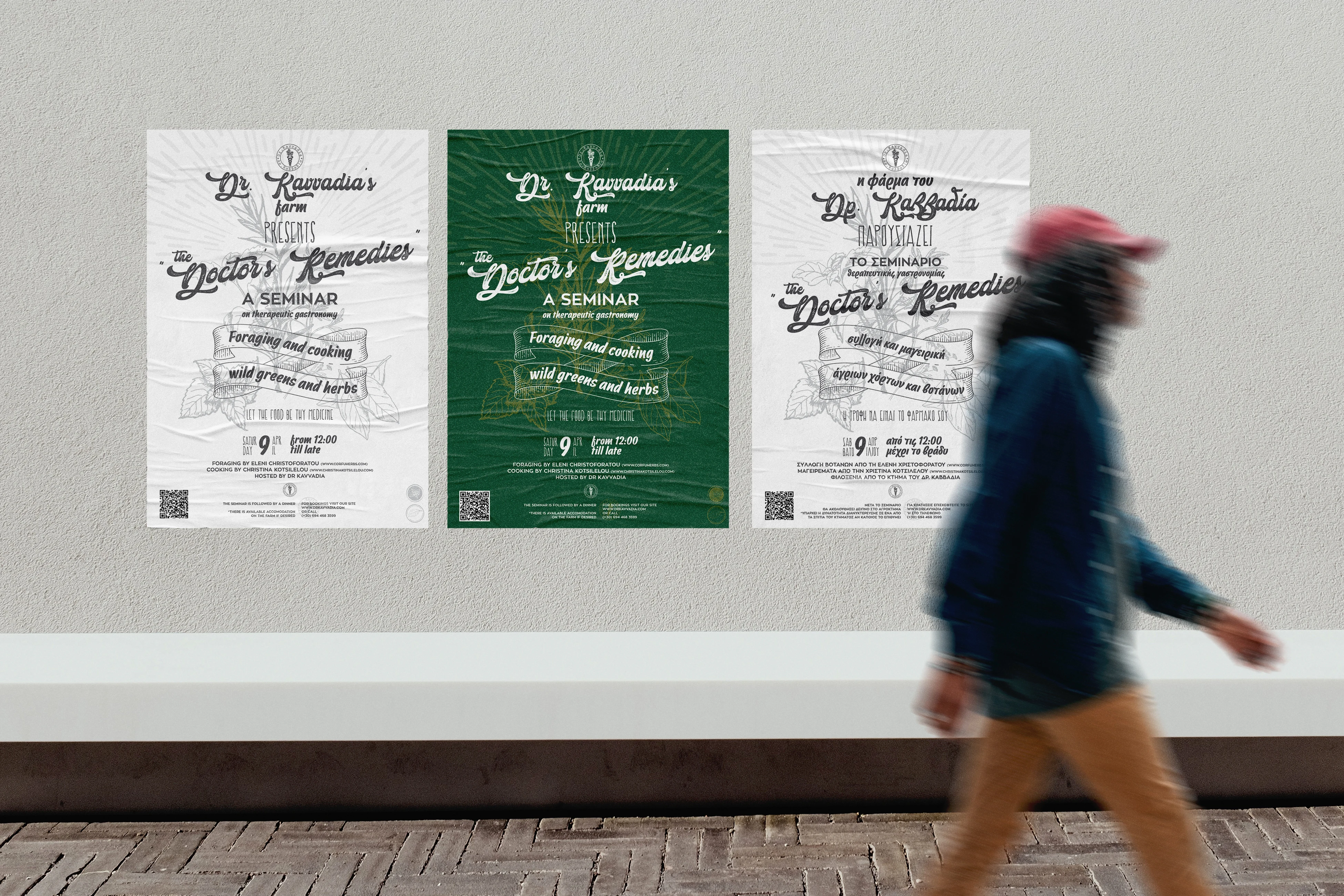Each poster was designed both in colour and in black & white (greyscale). Also they were designed in both English and Greek. That proved to be a challenge, in the sense that all fonts had to feature both alphabets. In the only case that this was not possible, a Greek version of the font was created (just for the text used).