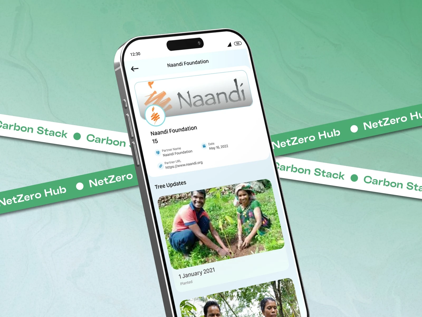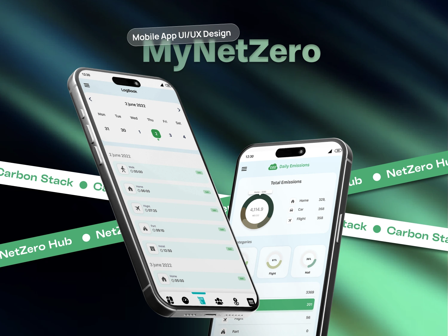 MyNetZero is a sustainability mobile app that allows users to measure daily human activities, calculate carbon emissions, join organizations for collective carbon management, and collaborate with NGOs for tree plantation initiatives. The app combines personal accountability, community participation, and environmental impact tracking into a single, easy-to-use experience.