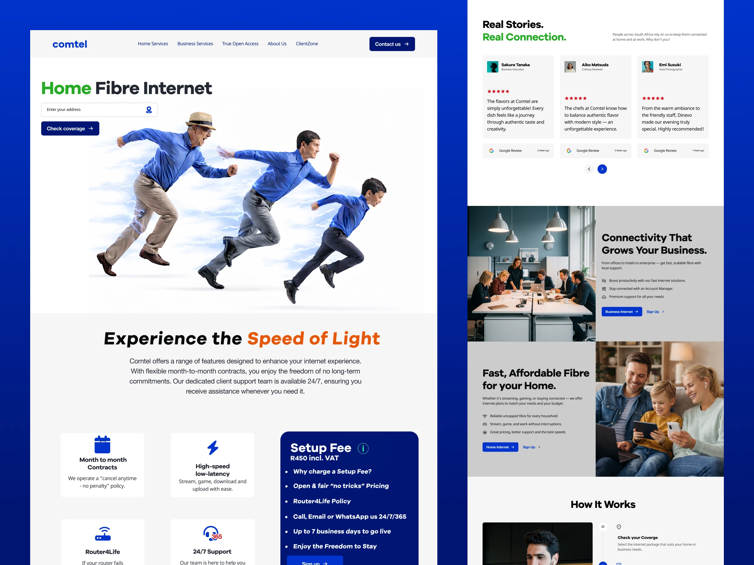 Reliable uncapped fibre for home and business across South Africa. No contracts, fair pricing, fast speeds, and local support. Check availability today.