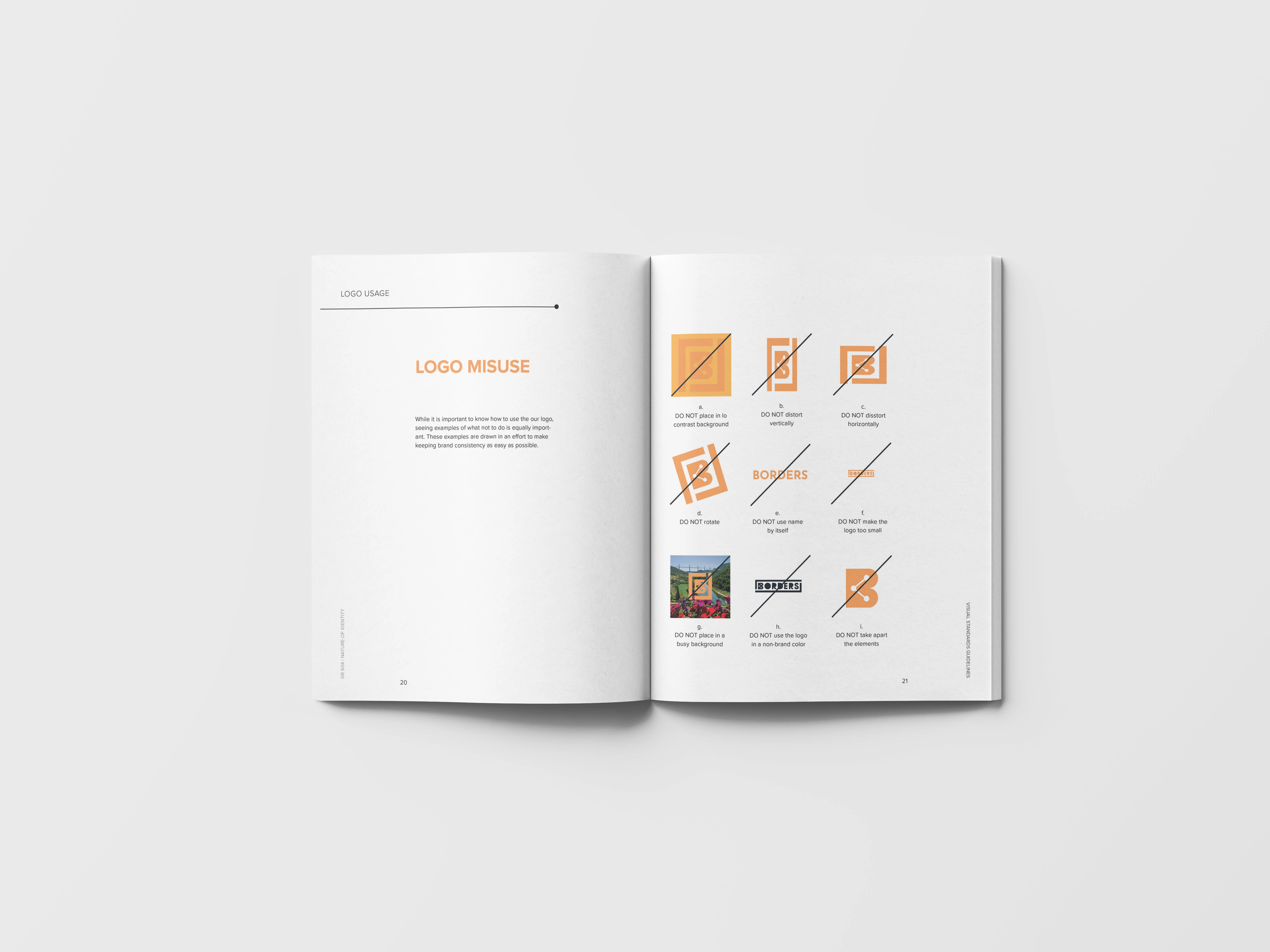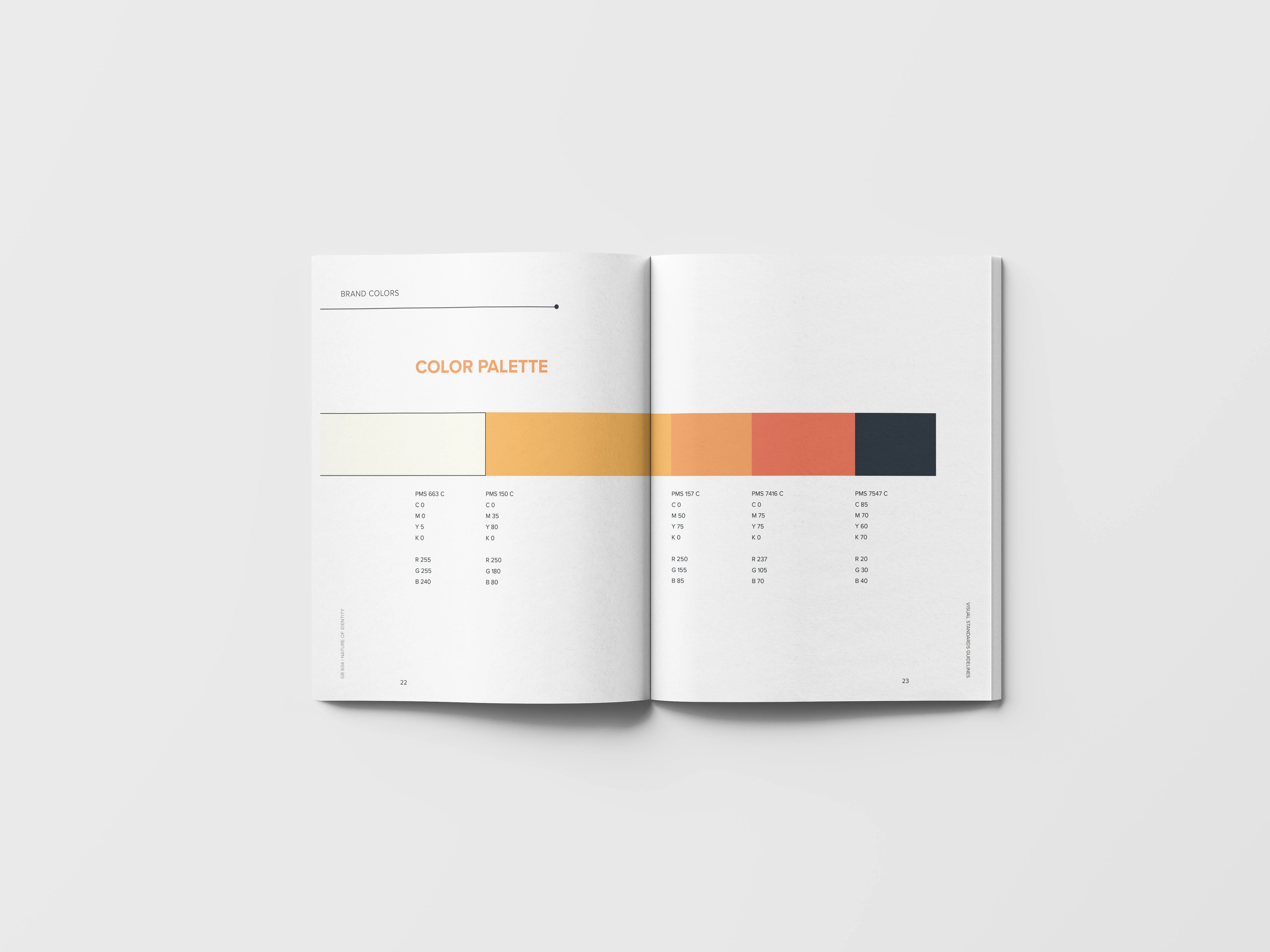In the end, the project resulted in 3 books that collectively show the process from beginning to end: from research and ideation to process sketches, and finally, to the full brand standards guide. Takeaways 📣