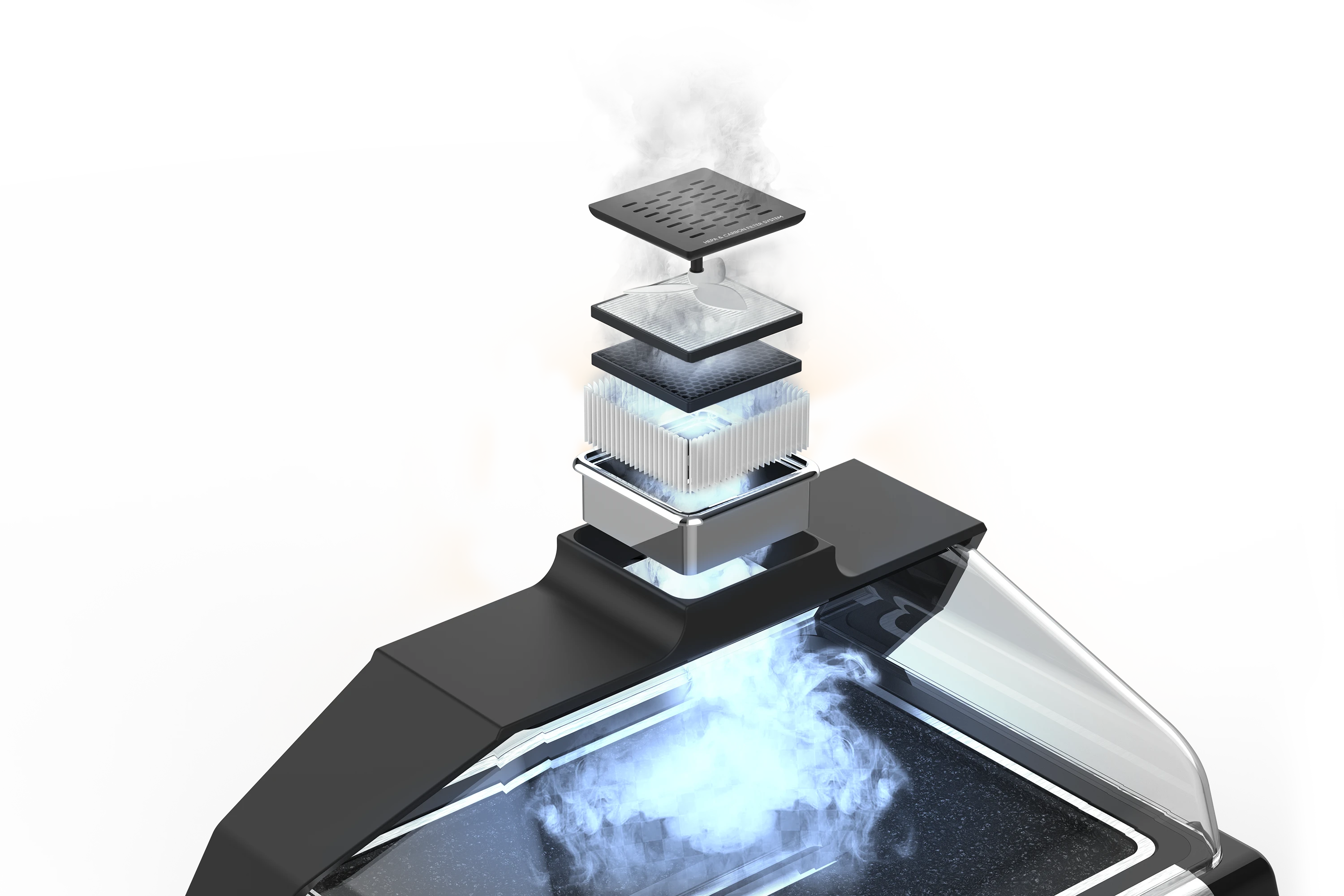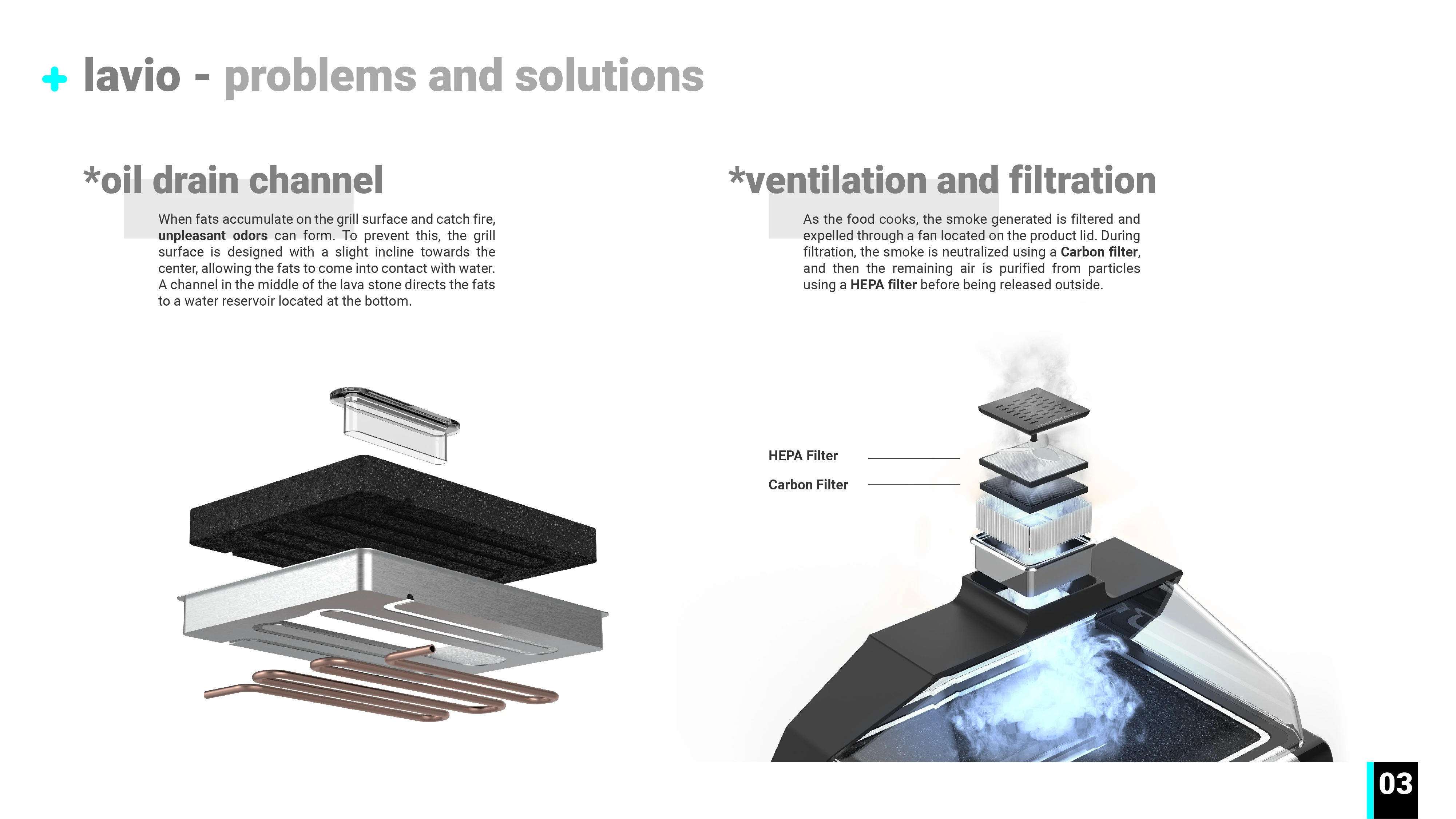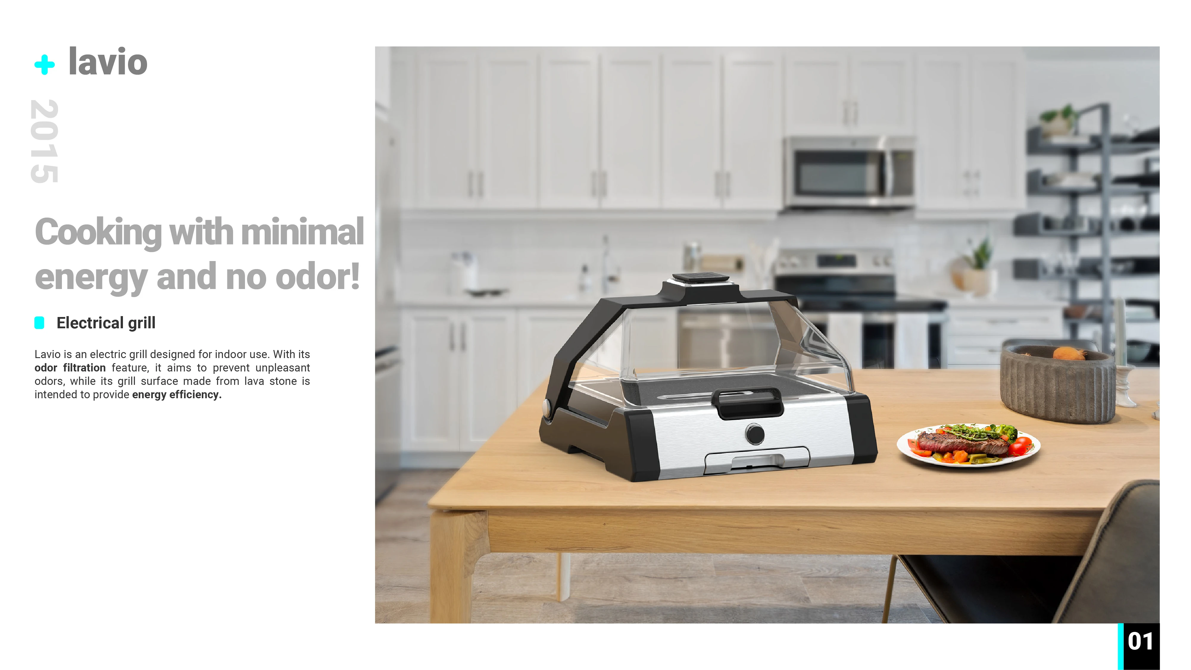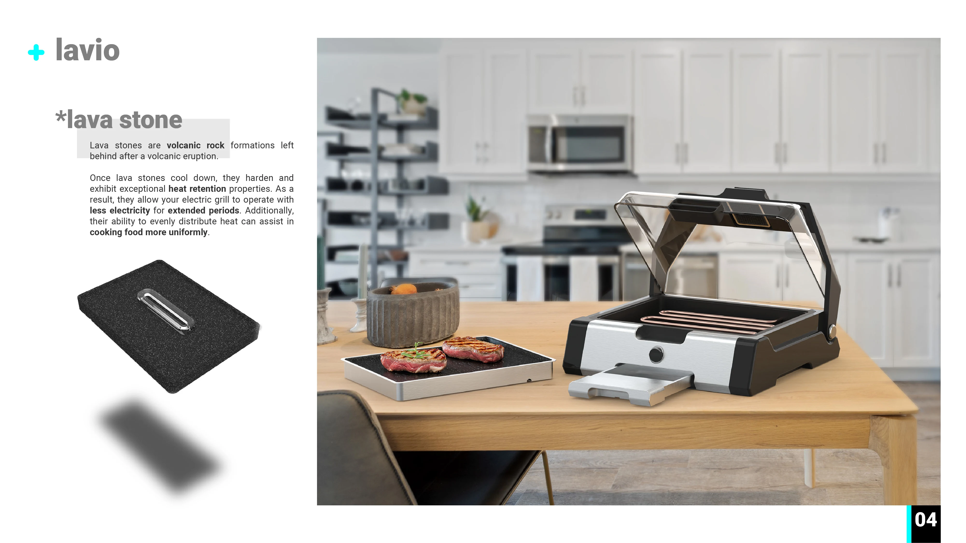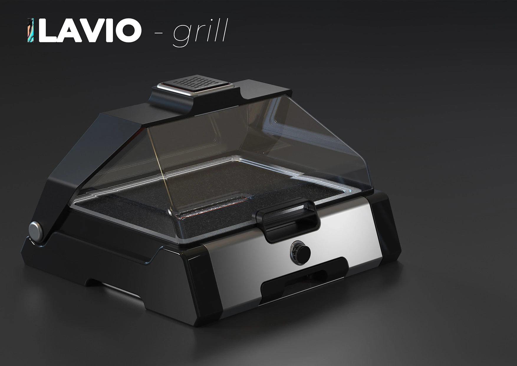 LAVIO is an electric grill with a lava stone and a filtration system to prevent foul smell.