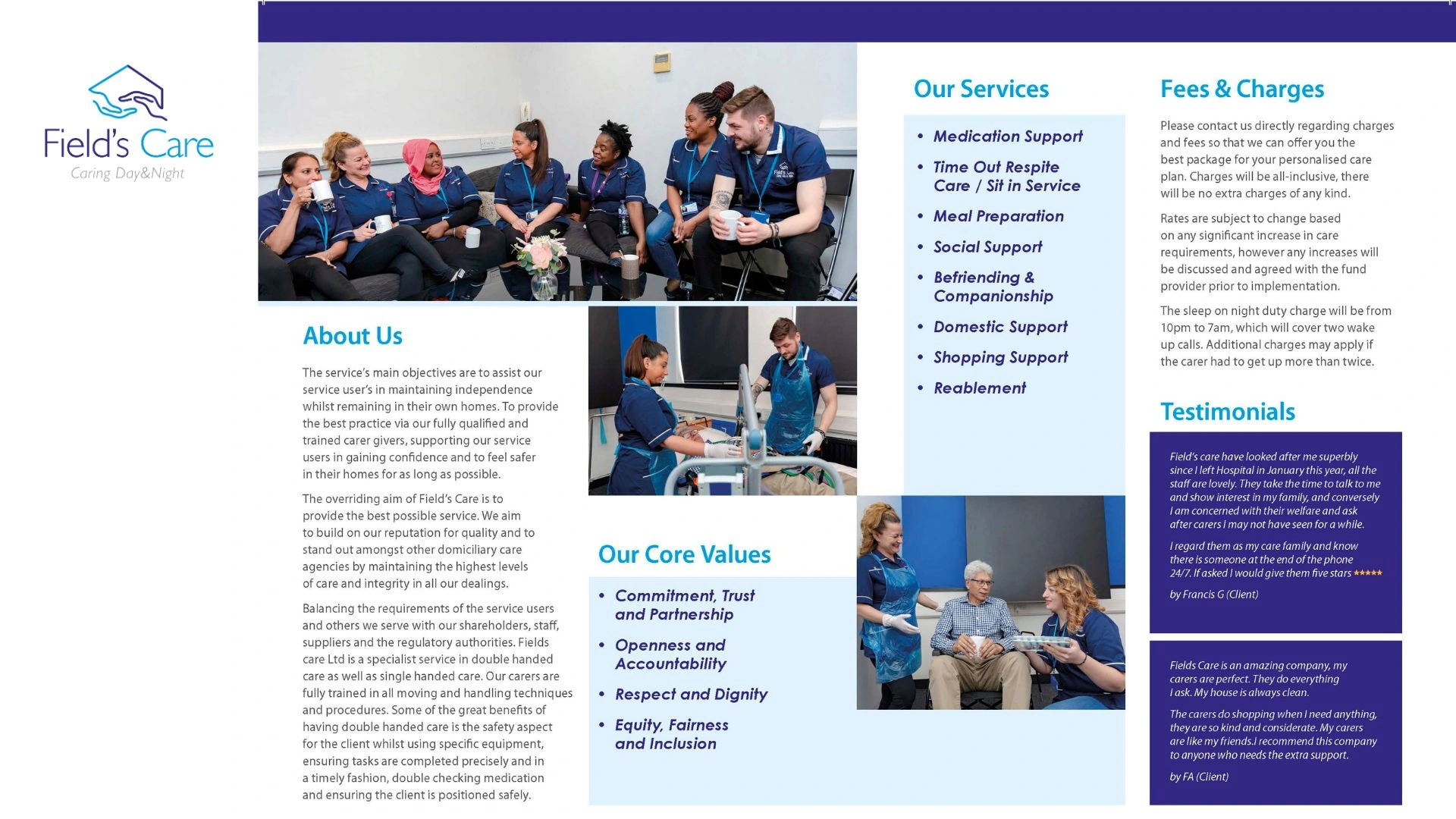 Field's Care Branding Project focuses on developing a compassionate and professional brand identity for a company dedicated to supporting elderly and people in need of help. The goal is to create a warm, trustworthy image that reflects their commitment to exceptional care and enhances their visibility and appeal in the community.