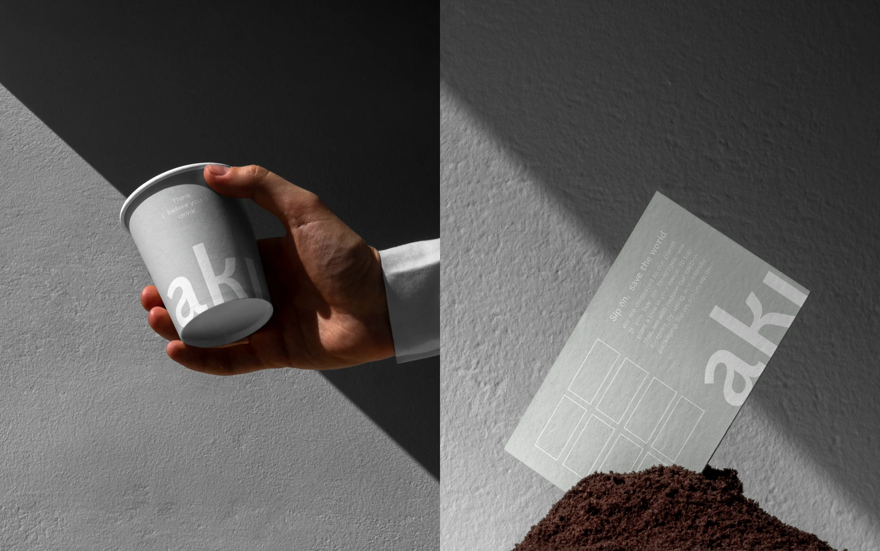 The result is an identity that balances eco values with a sophisticated look and feel. Aki can now communicate its story with clarity, while also fitting into the aesthetic expectations of a modern conscious coffee brand.