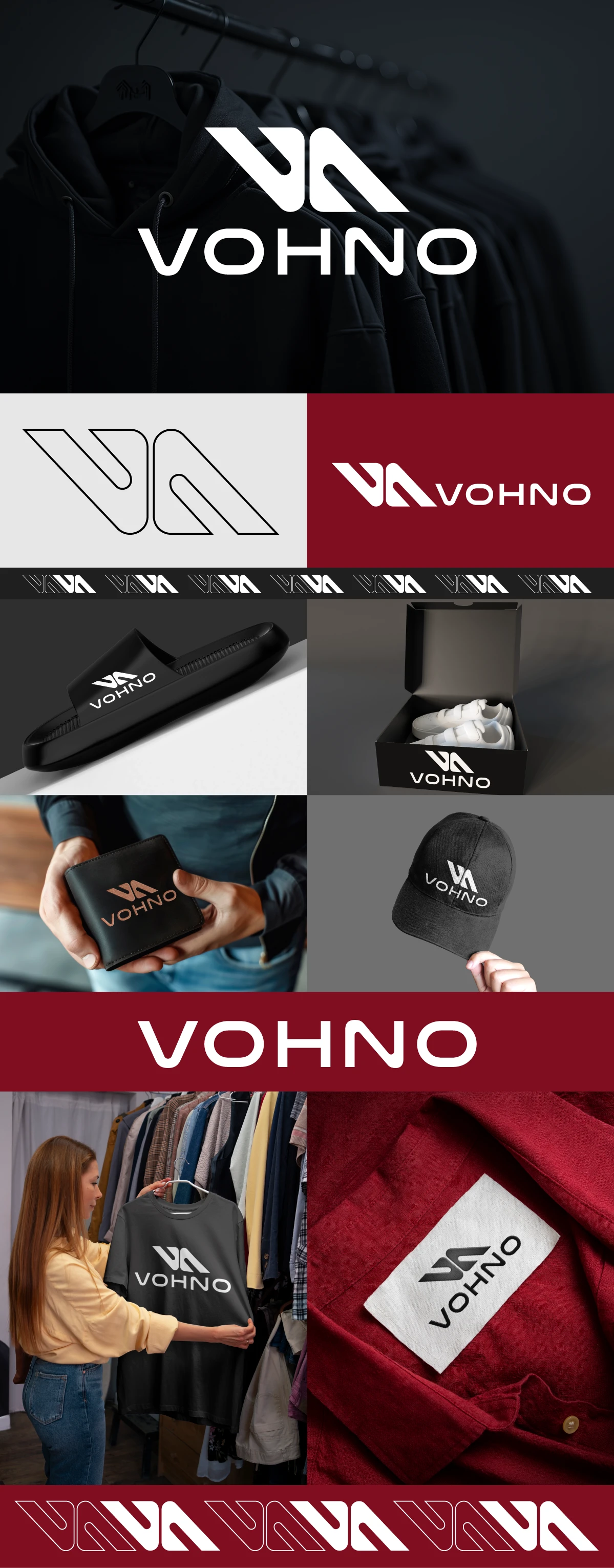 VOHNO is a modern lifestyle and apparel brand built on precision, minimalism, and forward-thinking design. The identity combines a sleek monogram with refined typography, creating a bold, high-end presence suitable for fashion, accessories, and contemporary retail. This system is engineered for versatility—working seamlessly across apparel, packaging, and digital experiences.