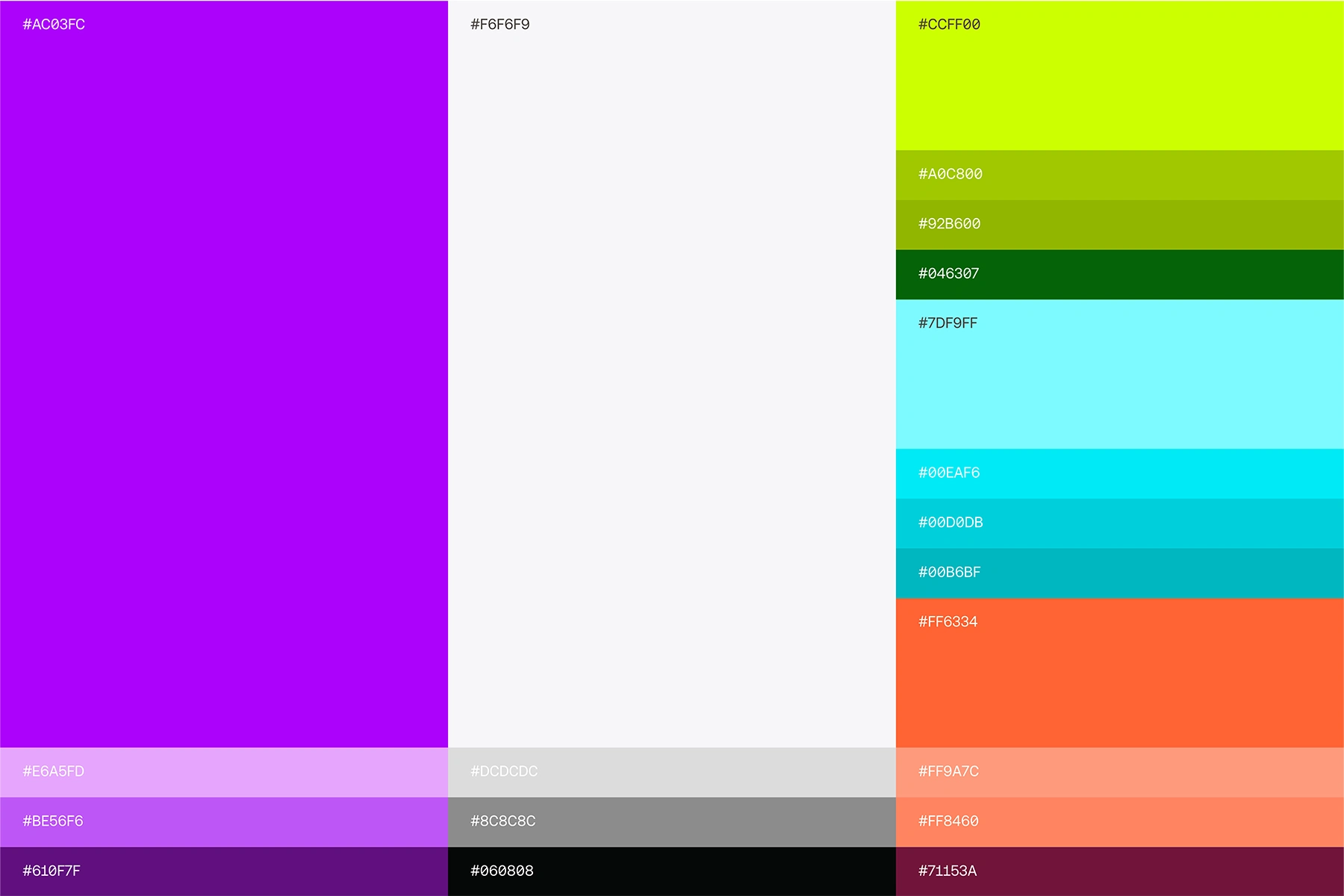 Autoblocks’ color system is designed to embody clarity, confidence, and technical precision. A high-contrast core palette anchors the brand: deep neutrals convey stability and trust, while clean white space emphasizes structure and focus. Strategic accent tones introduce energy and guide attention across complex interfaces without overwhelming them.