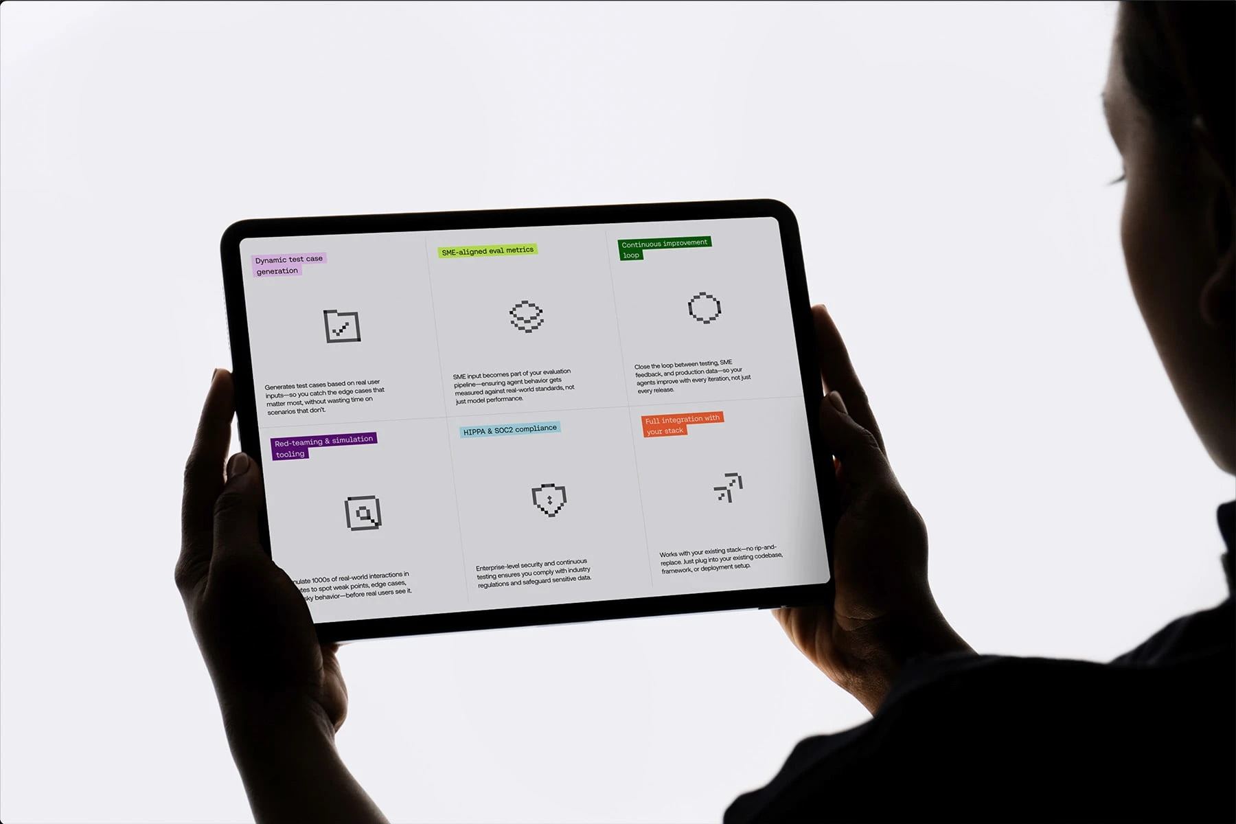 Autoblocks’ type system pairs a neutral, squarish sans-serif with a mono-spaced variant, reinforcing the product’s technical nature. This combination creates hierarchy and rhythm across interfaces while maintaining a clean, minimal aesthetic. It brings a sense of order to complex information, supporting clear communication at every touchpoint.