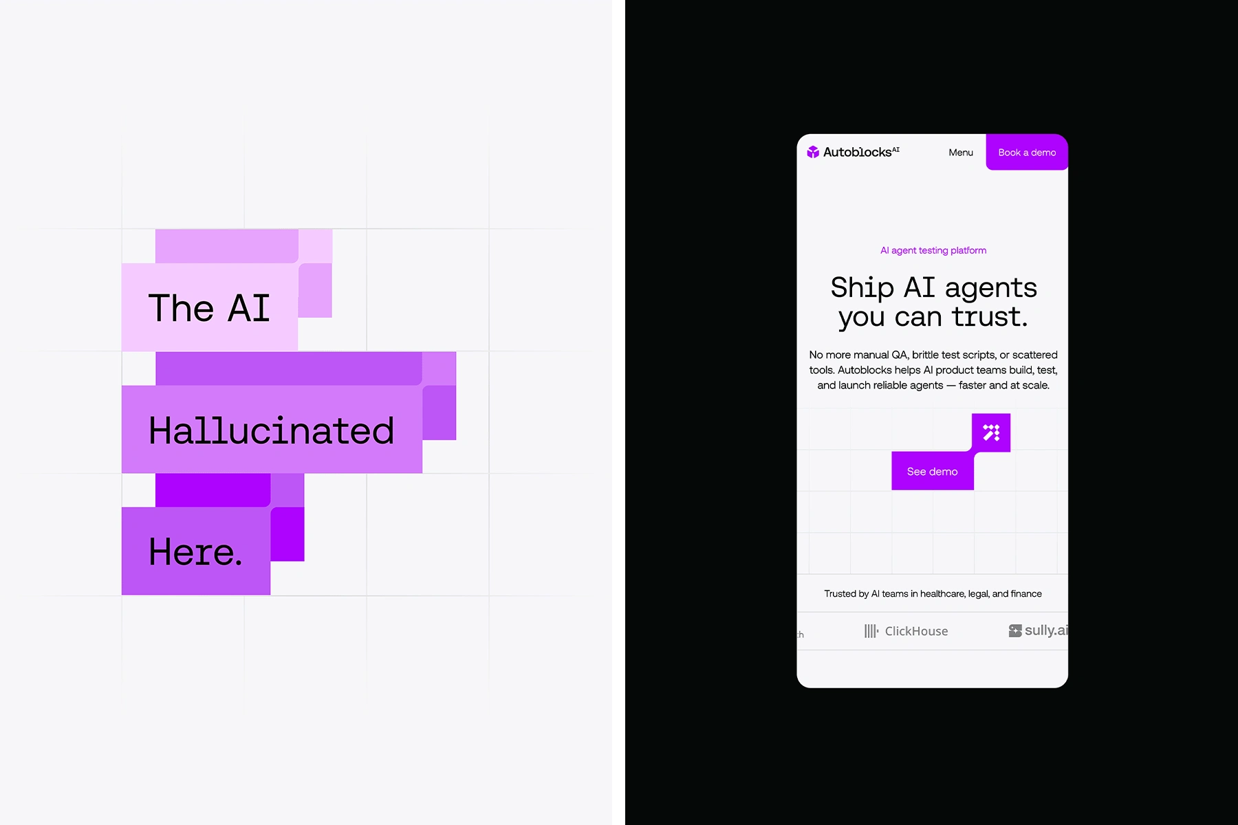 The custom logotype is built on a strict geometric grid, balancing sharp precision with modern simplicity. Its solid, engineered letterforms signal stability and authority, while subtle spatial refinements convey clarity and intentionality. The result is a mark that feels systematic yet human, mirroring Autoblocks’ role as a dependable backbone for AI systems