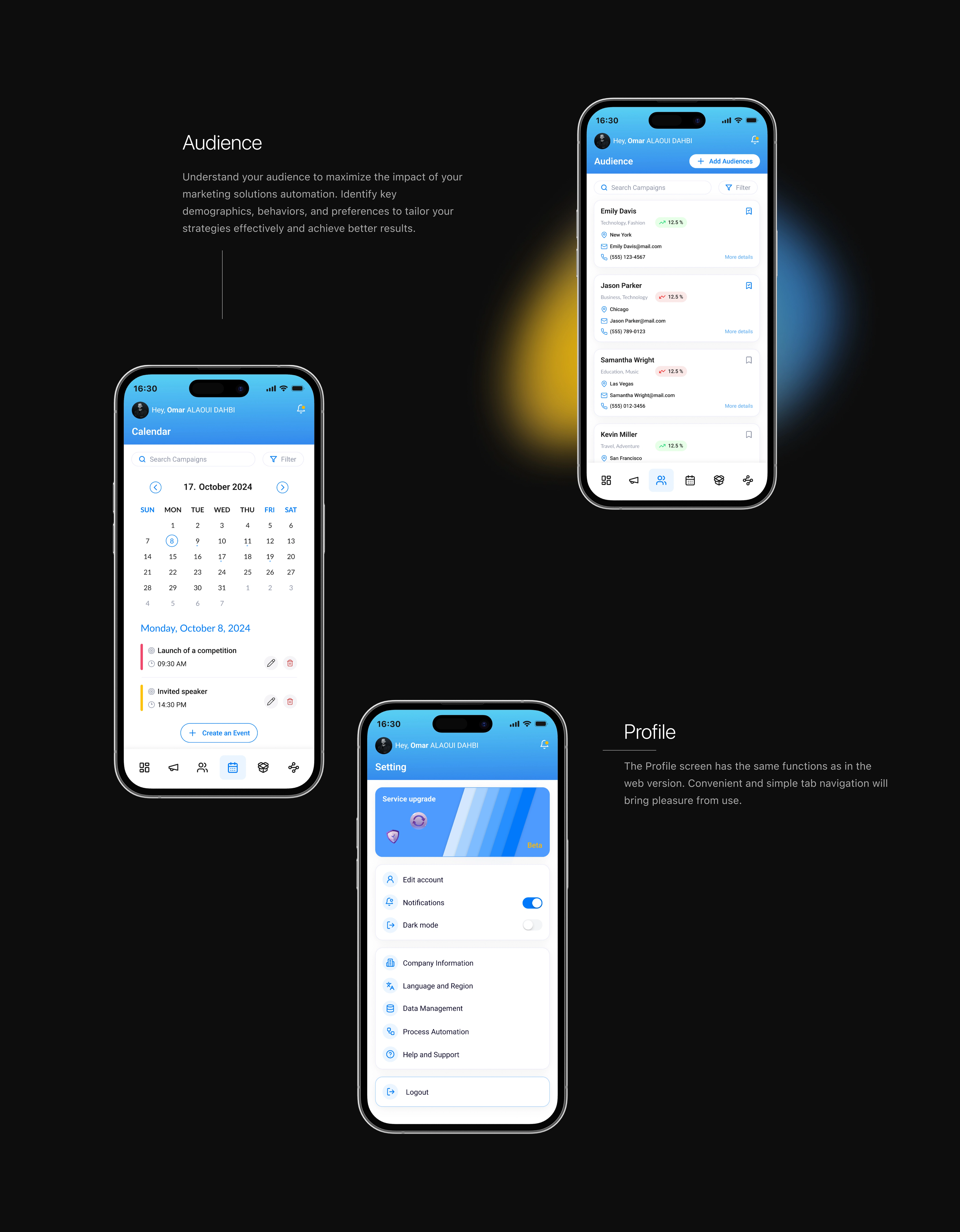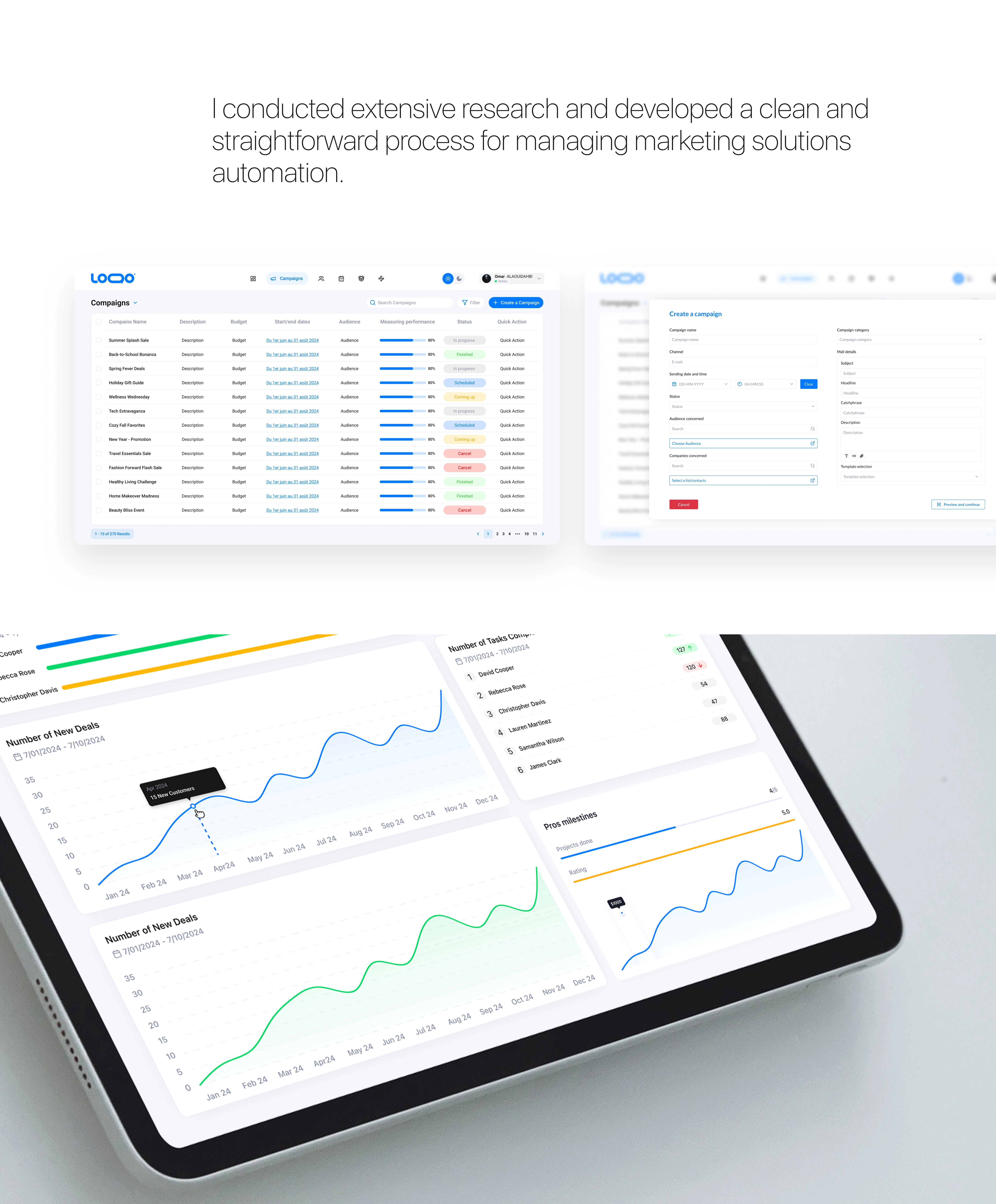Une plateforme marketing intuitive, axée UX/UI, pour simplifier les stratégies et renforcer l'engagement via une appli web et une interface fluide.