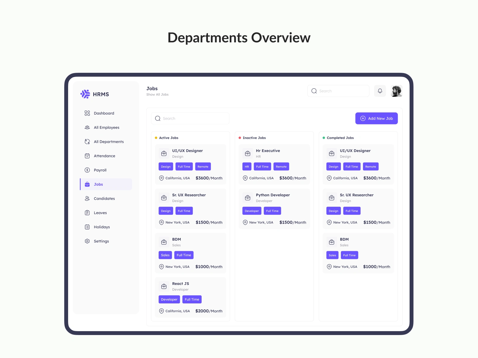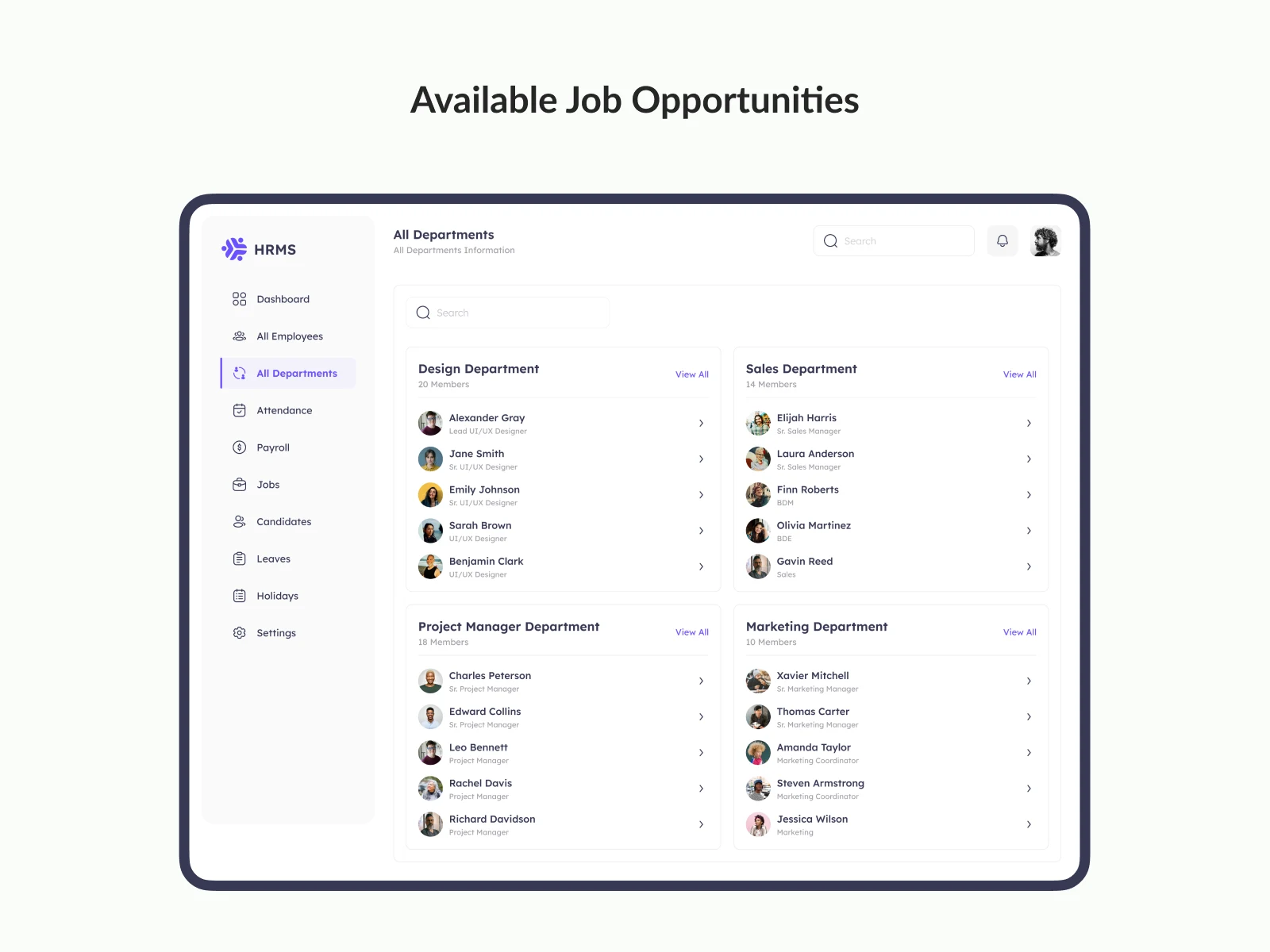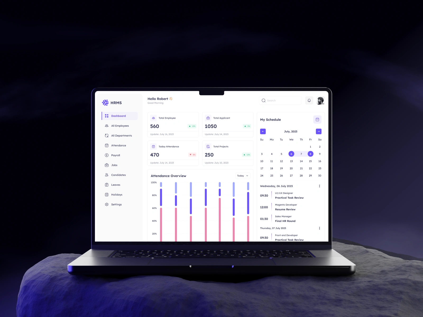 Build a responsive HR management dashboard for efficient employee data management, performance tracking, attendance, leave management, and insightful analytics.