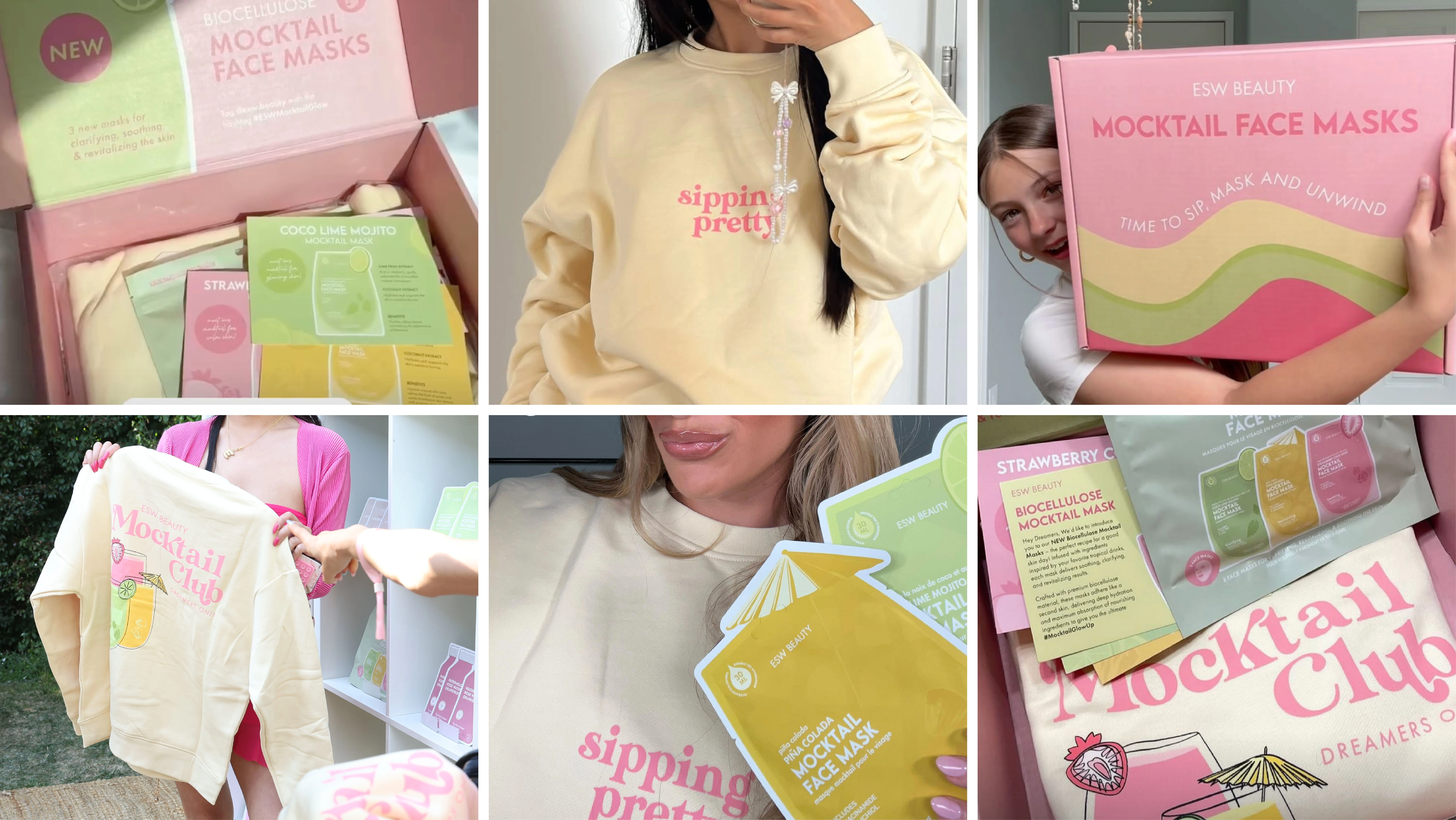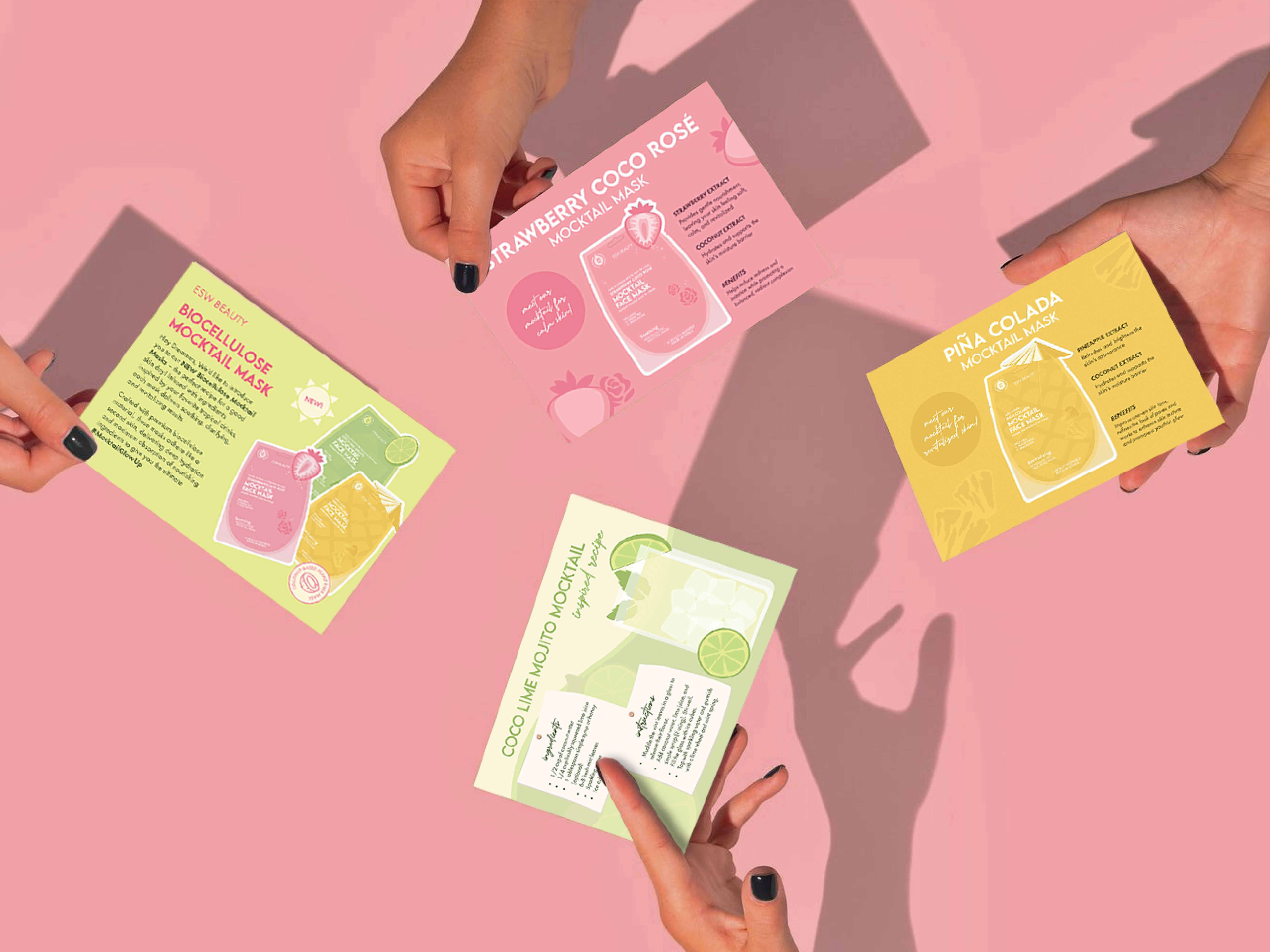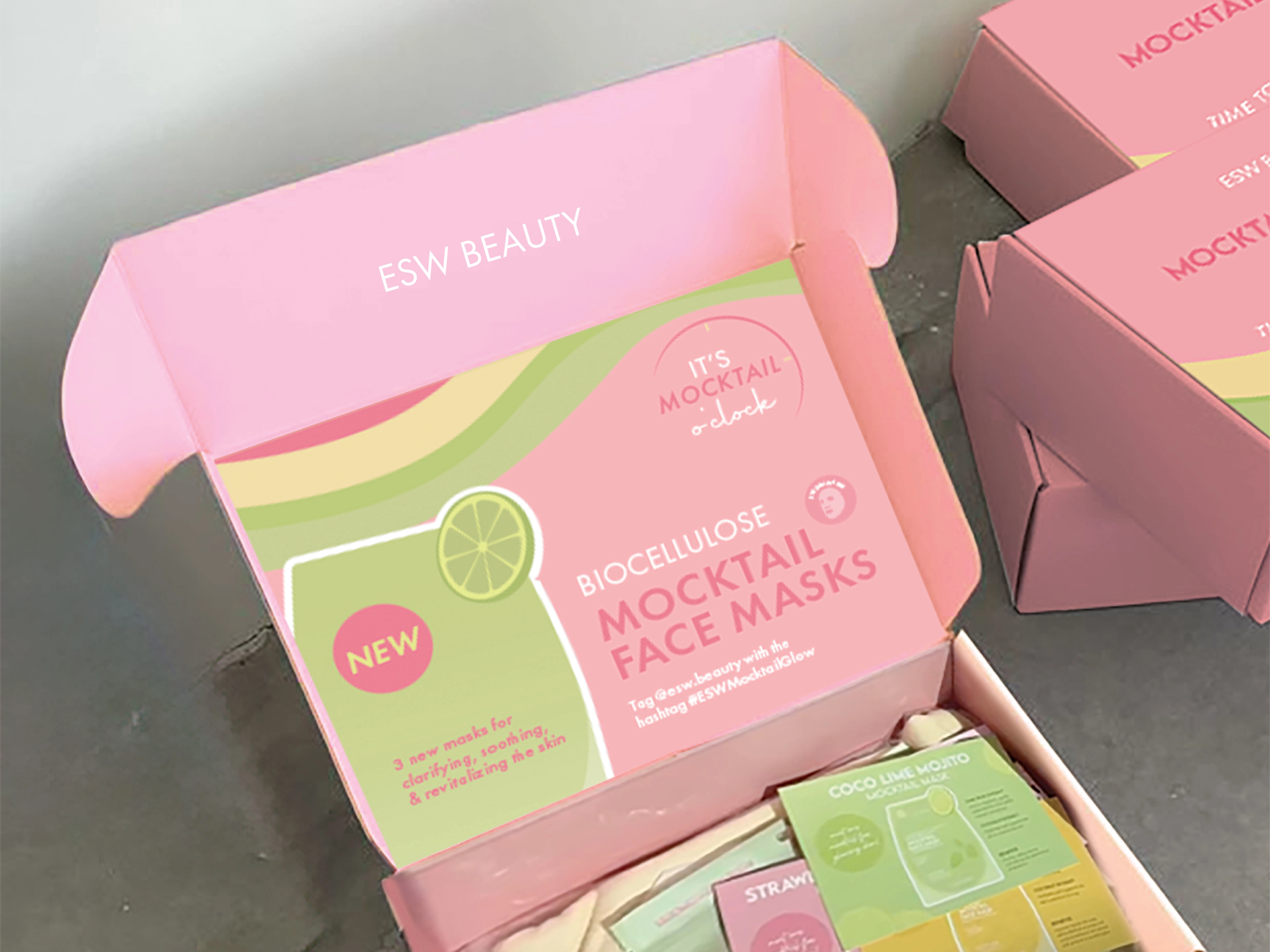 The Mocktail PR Box transforms skincare into an immersive experience. Designed for influencers, it combines biocellulose face masks, a cozy sweatshirt, and info cards with mocktail recipes, creating a playful “sip, mask, and unwind” moment.