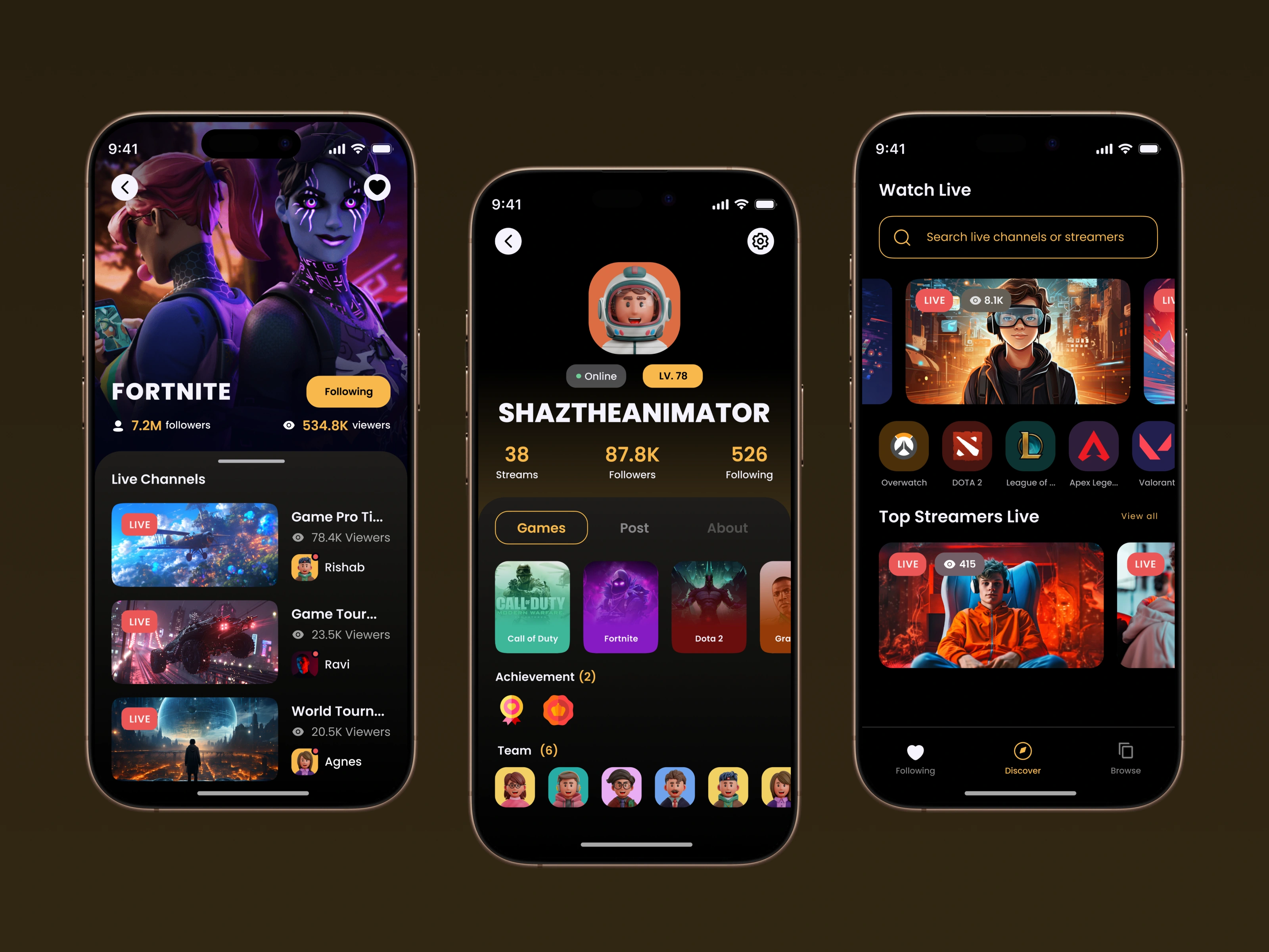 "Introducing Livee, a modern game streaming mobile app UI/UX design crafted for seamless gaming experiences. Featuring an intuitive interface, live chat,