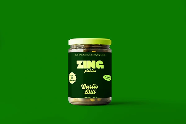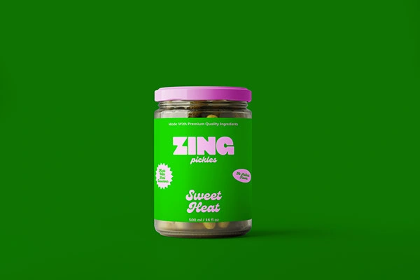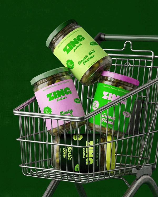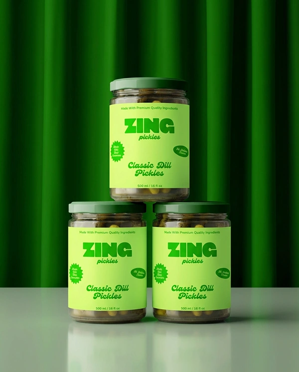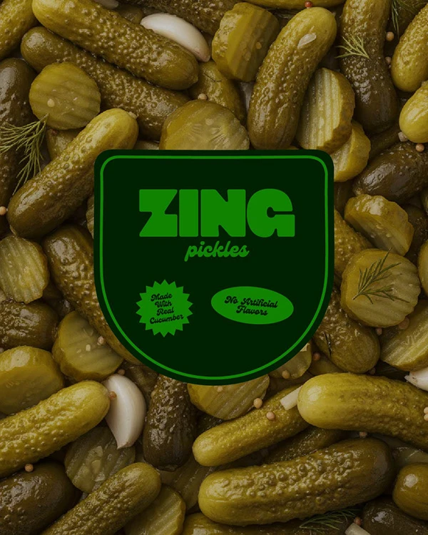 Zing transforms a traditional pickle product into a bold, modern brand that feels fresh, energetic, and full of personality.