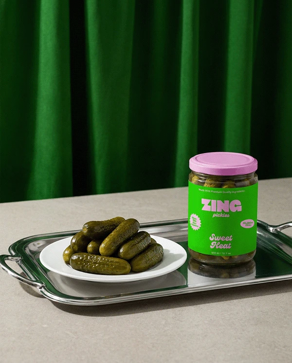 Zing is a bright, flavour-forward pickle brand built around freshness, crunch, and bold taste.