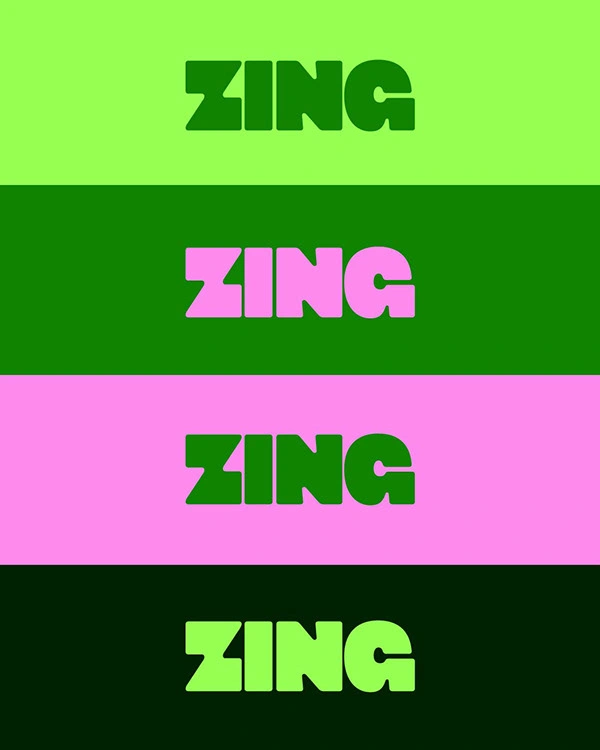 The Zing identity is built around a vibrant green colour system that instantly signals freshness and flavour.