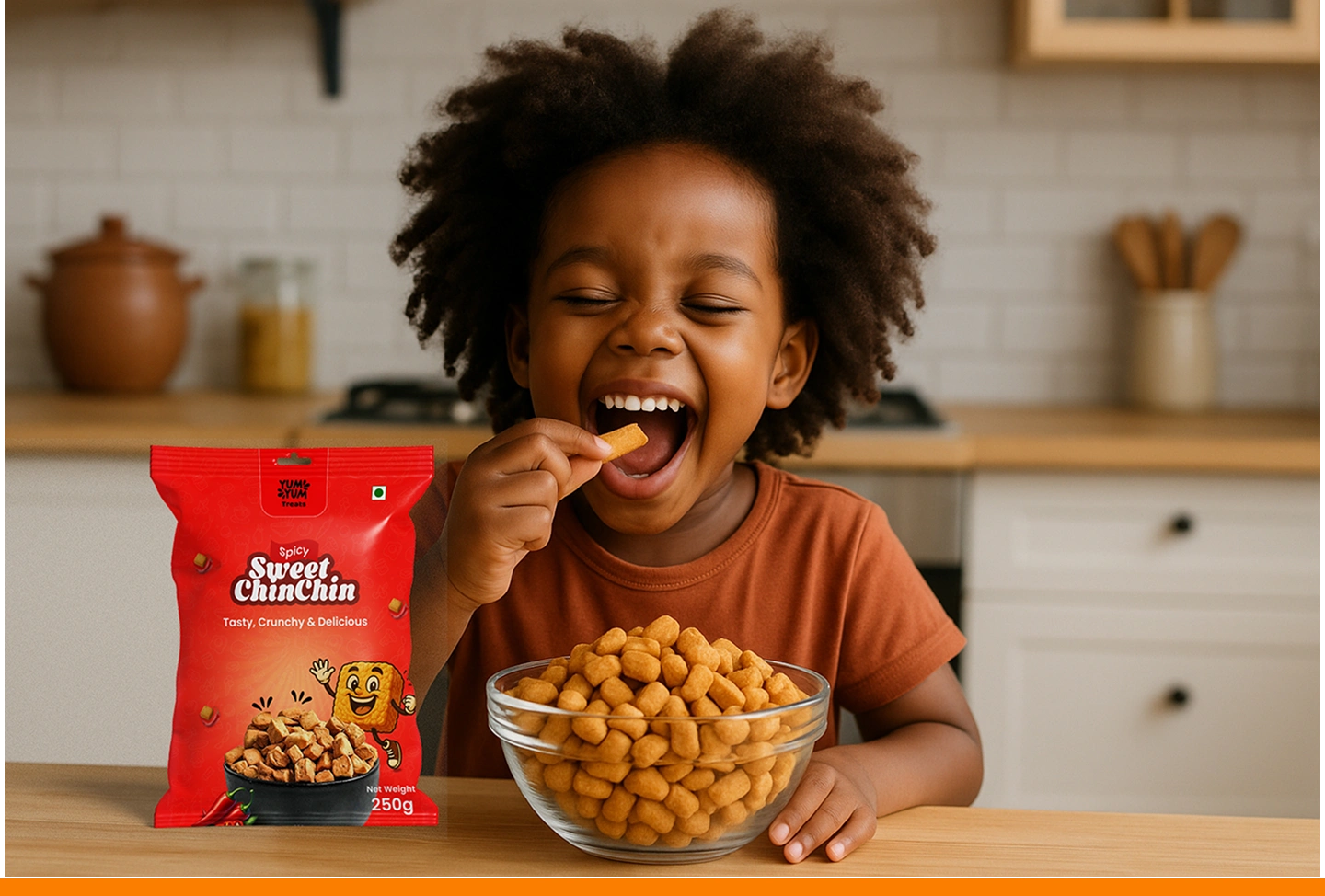 YumYum Treats wanted a vibrant, young chinchin brand in Classic and Spicy flavor to offer to school children, teens, and young adults. Sweet Chinchin is a tasty, crunchy and delicious chinchin snack that one can munch on anywhere.