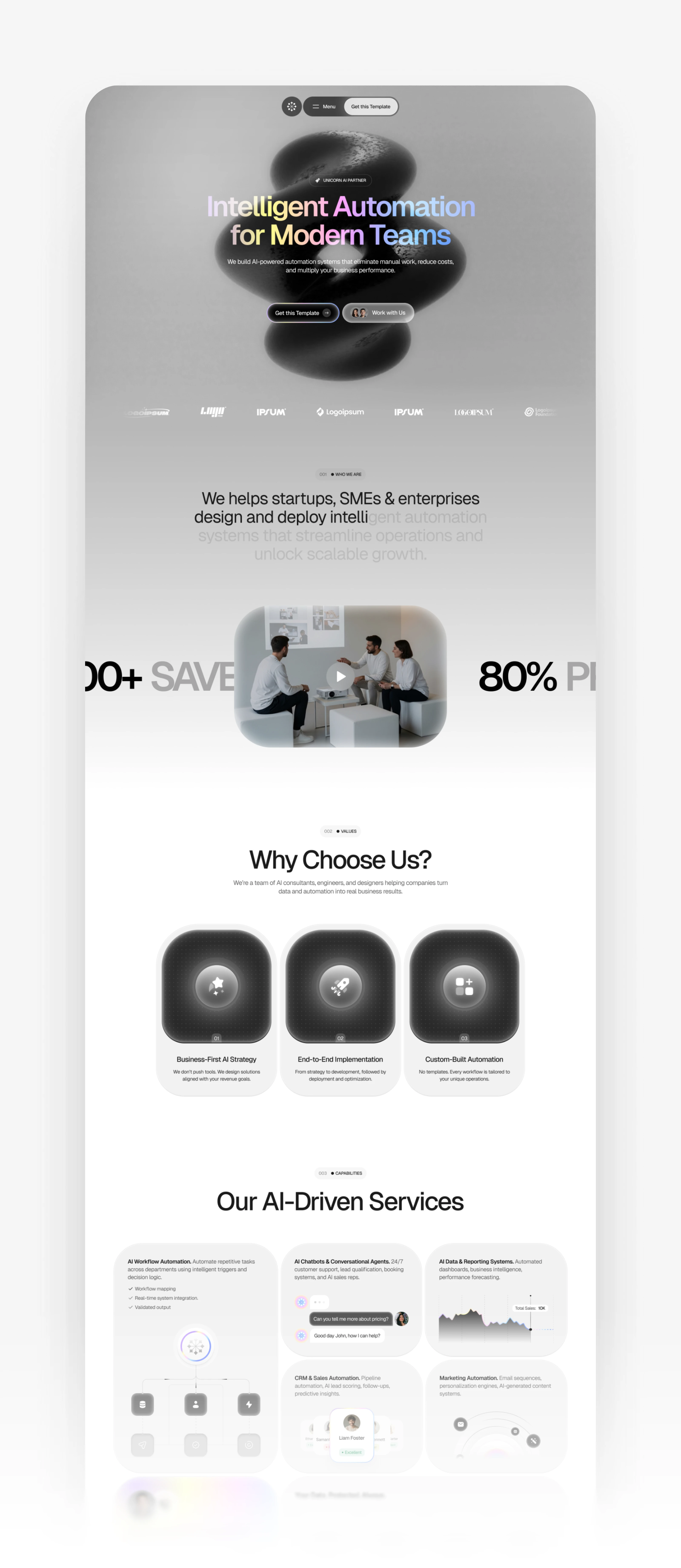 Designed a Webflow template for AI automation service agencies.