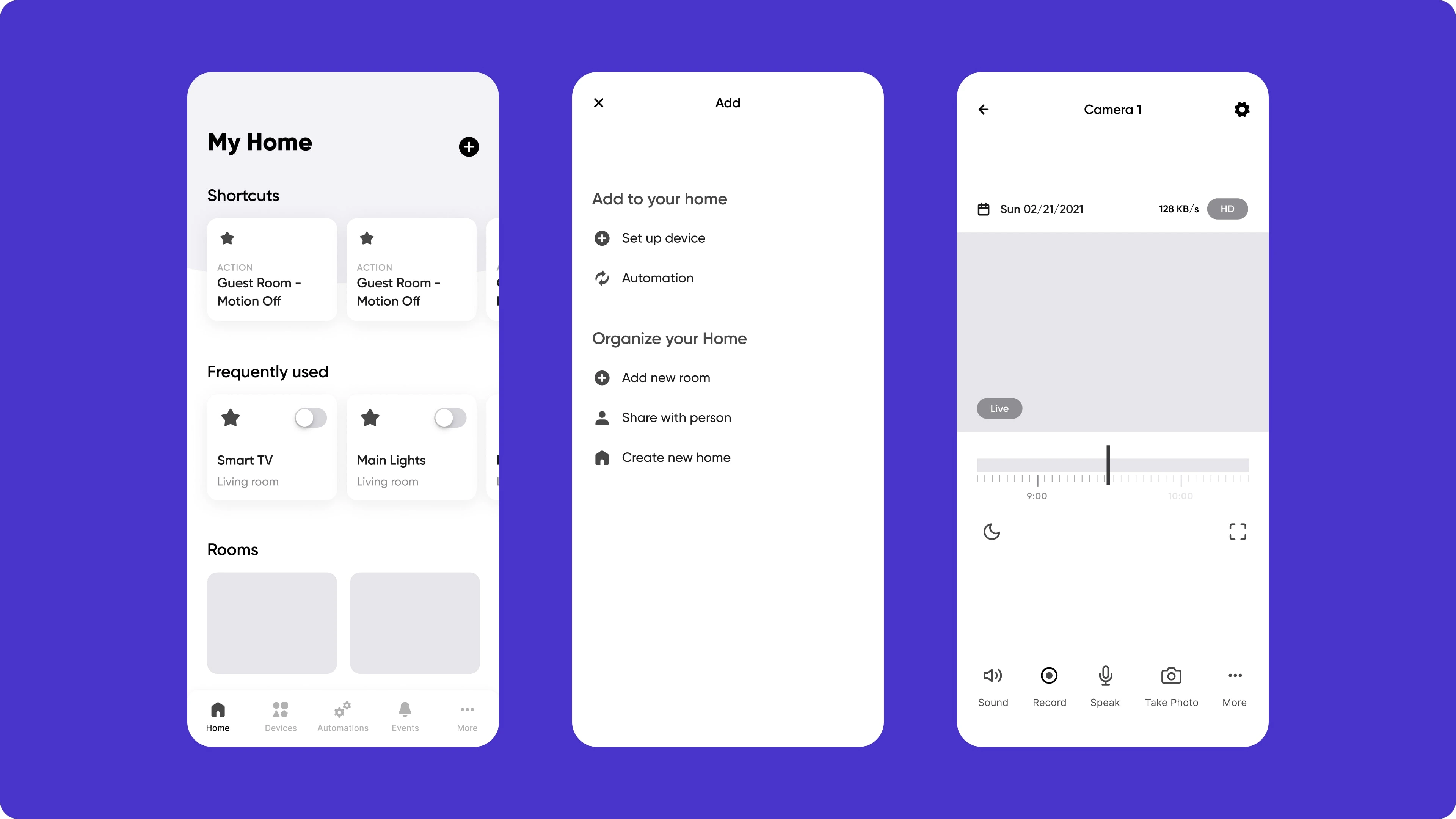 The Wyze home application prioritizes comfort and security in every room of the house. I was tasked with creating a concept that feels like the only app needed for a safe and inviting home experience. The main goal was to unify different platforms under a cohesive and modern visual style. The design emphasizes an accessible, user-friendly interface that caters to people of all ages.