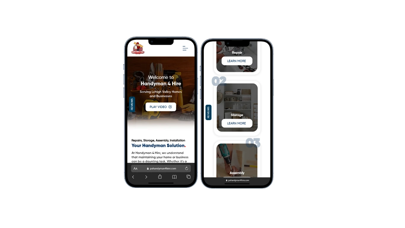I collaborated with Handyman 4 Hire, a licensed and insured handyman service in the Lehigh Valley, Pennsylvania, to design a website that clearly communicates their reliability and broad service range. Their services include repairs, storage, assembly, and installation for both homeowners and businesses. The site needed to emphasize trust, professionalism, local reach, and ease of contact while showcasing images and project examples that reflect quality work.